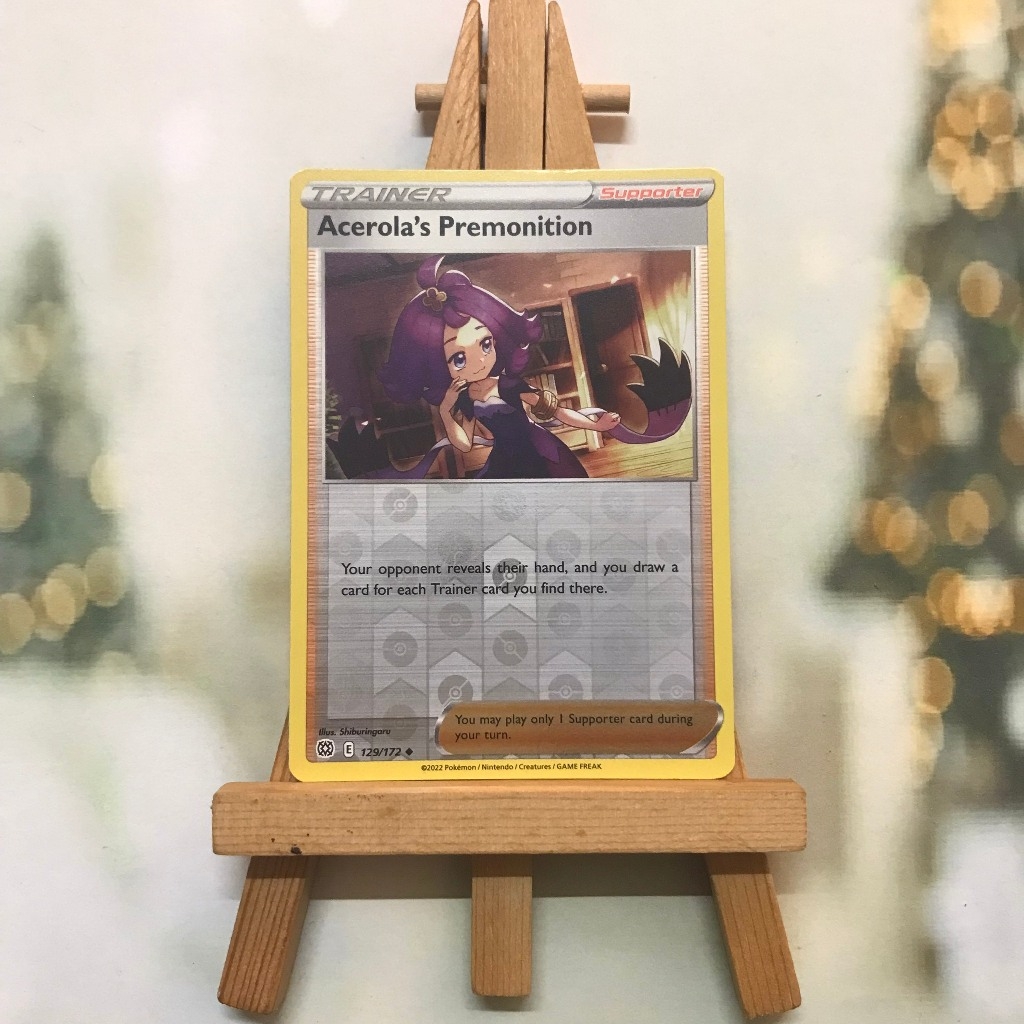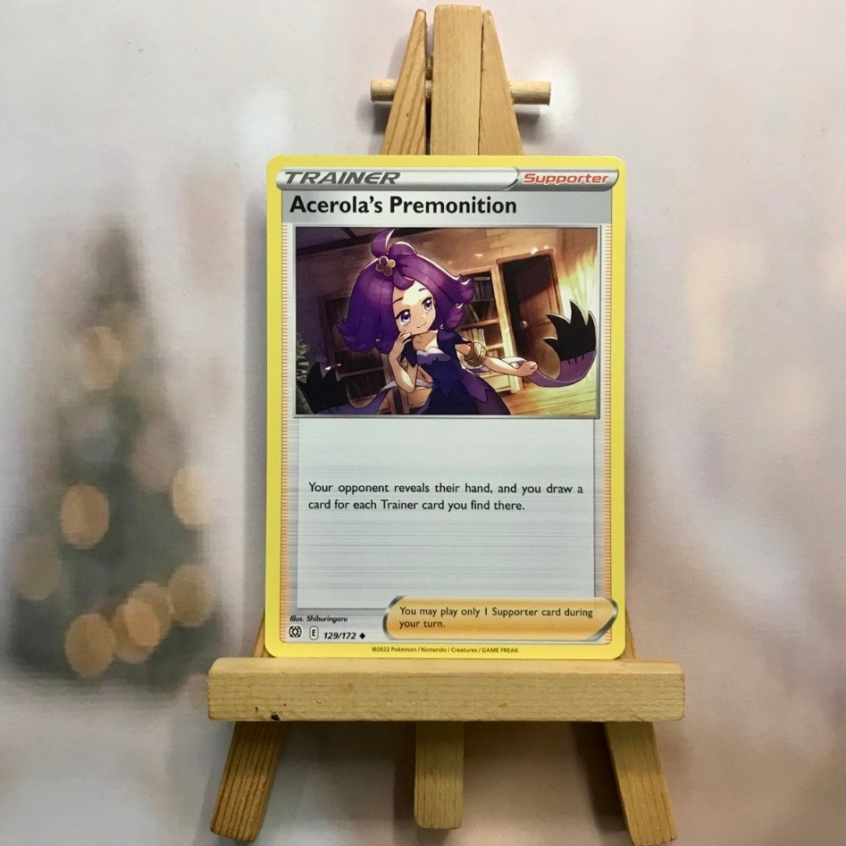 Thẻ hình Pokemon Acerola's Premonition 129/172 - Lá bài Sword & Shield: Brilliant Stars Uncommon Reverse Holo tiếng Anh chính hãng Nintendo - Nhập khẩu Hoa Kỳ USA ➖➖➖➖➖➖ Sản phẩm chính hãng TCG, được sản xuất bởi The Pokémon Company, nên quý khách có thể yên tâm về chất lượng và độ độc đáo của từng thẻ bài. Chúng tôi cam kết chỉ bán hàng chính hãng và nói không với hàng nhái, hàng giả mạo. Mỗi thẻ bài đều ở trong tình trạng NM-M và sẽ là một phần không thể thiếu cho bộ sưu tập của bạn, giúp bạn có những trải nghiệm thú vị và phong phú. Chất liệu chính của thẻ bài là giấy cao cấp, đảm bảo độ bền và màu sắc sống động, chi tiết. Dòng sản phẩm: TCG Hãng sản xuất: The Pokémon Company Chất liệu: Giấy Kích thước thẻ bài: 6,3×8,8cm ➖➖➖➖➖➖ Thông Báo Hướng Dẫn Bảo Quản và Kiểm Tra Sản Phẩm Thẻ Bài: ✅ Quay Video Khi Mở Kiện: Để đảm bảo quyền lợi, khi nhận sản phẩm, vui lòng quay video quá trình mở kiện. Video này sẽ là bằng chứng đối chiếu quý giá, giúp chúng tôi nhanh chóng giải quyết mọi vấn đề và thắc mắc của bạn. ✅ Mọi sản phẩm như Gói thẻ bài (Pack lẻ), Booster Box, Bộ bài nguyên hộp phải còn nguyên niêm phong và bao bì. Chỉ những sản phẩm còn giữ nguyên vẹn mới được chấp nhận đổi trả hoàn tiền. ✅ Các lá bài chính hãng có thể bị cong khi tiếp xúc với không khí. Đây là hiện tượng bình thường, bạn có thể khắc phục bằng cách sử dụng bọc bài, cất vào album, hoặc ép giữa quyển vở dày. ✅ Một số lá bài có thể xuất hiện các vết trầy xước nhỏ, nhưng không ảnh hưởng đến chất lượng và quá trình sử dụng của bạn. ✅ Chúng tôi không chịu trách nhiệm về nội dung bên trong các gói và hộp thẻ bài do đóng gói và niêm phong từ nhà sản xuất. Mọi thắc mắc và khiếu nại, vui lòng liên hệ trực tiếp với chúng tôi.