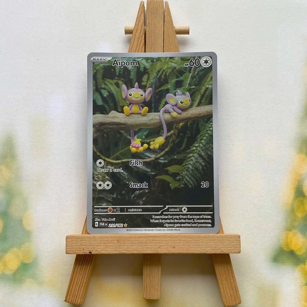 Thẻ hình Pokemon Aipom 211/182 - Lá bài lẻ Paradox Rift Illustration Rare tiếng Anh Nintendo - Nhập khẩu Hoa Kỳ USA ➖➖➖➖➖➖ Sản phẩm TCG, được sản xuất bởi The Pokémon Company, nên quý khách có thể yên tâm về chất lượng và độ độc đáo của từng thẻ bài. Chúng tôi cam kết nói không với hàng nhái, hàng giả mạo. Mỗi thẻ bài đều ở trong tình trạng NM-M và sẽ là một phần không thể thiếu cho bộ sưu tập của bạn, giúp bạn có những trải nghiệm thú vị và phong phú. Chất liệu chính của thẻ bài là giấy cao cấp, đảm bảo độ bền và màu sắc sống động, chi tiết. Dòng sản phẩm: TCG Hãng sản xuất: The Pokémon Company Chất liệu: Giấy Kích thước thẻ bài: 6,3×8,8cm ➖➖➖➖➖➖ Thông Báo Hướng Dẫn Bảo Quản và Kiểm Tra Sản Phẩm Thẻ Bài: ✅ Quay Video Khi Mở Kiện: Để đảm bảo quyền lợi, khi nhận sản phẩm, vui lòng quay video quá trình mở kiện. Video này sẽ là bằng chứng đối chiếu quý giá, giúp chúng tôi nhanh chóng giải quyết mọi vấn đề và thắc mắc của bạn. ✅ Mọi sản phẩm như Gói thẻ bài (Pack lẻ), Booster Box, Bộ bài nguyên hộp phải còn nguyên niêm phong và bao bì. Chỉ những sản phẩm còn giữ nguyên vẹn mới được chấp nhận đổi trả hoàn tiền. ✅ Các lá bài có thể bị cong khi tiếp xúc với không khí. Đây là hiện tượng bình thường, bạn có thể khắc phục bằng cách sử dụng bọc bài, cất vào album, hoặc ép giữa quyển vở dày. ✅ Một số lá bài có thể xuất hiện các vết trầy xước nhỏ, nhưng không ảnh hưởng đến chất lượng và quá trình sử dụng của bạn. ✅ Chúng tôi không chịu trách nhiệm về nội dung bên trong các gói và hộp thẻ bài do đóng gói và niêm phong từ nhà sản xuất. Mọi thắc mắc và khiếu nại, vui lòng liên hệ trực tiếp với chúng tôi.