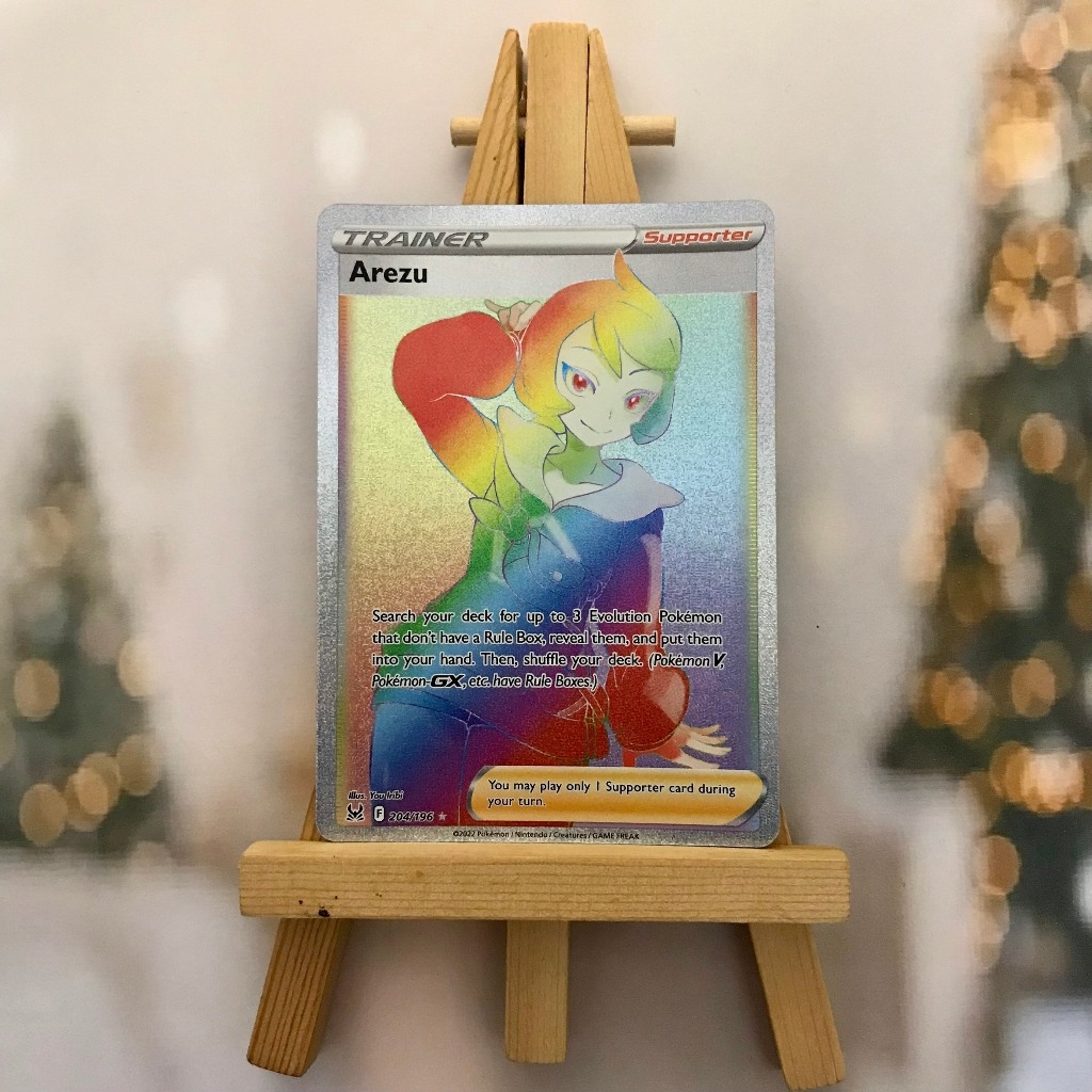Thẻ hình Pokemon Arezu 204/196 - Bài lẻ Hyper Rare tiếng Anh chính hãng Nintendo - Nhập khẩu Hoa Kỳ USA ➖➖➖➖➖➖ Sản phẩm chính hãng TCG, được sản xuất bởi The Pokémon Company, nên quý khách có thể yên tâm về chất lượng và độ độc đáo của từng thẻ bài. Chúng tôi cam kết chỉ bán hàng chính hãng và nói không với hàng nhái, hàng giả mạo. Mỗi thẻ bài đều ở trong tình trạng NM-M và sẽ là một phần không thể thiếu cho bộ sưu tập của bạn, giúp bạn có những trải nghiệm thú vị và phong phú. Chất liệu chính của thẻ bài là giấy cao cấp, đảm bảo độ bền và màu sắc sống động, chi tiết. Dòng sản phẩm: TCG Hãng sản xuất: The Pokémon Company Chất liệu: Giấy Kích thước thẻ bài: 6,3×8,8cm ➖➖➖➖➖➖ Thông Báo Hướng Dẫn Bảo Quản và Kiểm Tra Sản Phẩm Thẻ Bài: ✅ Quay Video Khi Mở Kiện: Để đảm bảo quyền lợi, khi nhận sản phẩm, vui lòng quay video quá trình mở kiện. Video này sẽ là bằng chứng đối chiếu quý giá, giúp chúng tôi nhanh chóng giải quyết mọi vấn đề và thắc mắc của bạn. ✅ Mọi sản phẩm như Gói thẻ bài (Pack lẻ), Booster Box, Bộ bài nguyên hộp phải còn nguyên niêm phong và bao bì. Chỉ những sản phẩm còn giữ nguyên vẹn mới được chấp nhận đổi trả hoàn tiền. ✅ Các lá bài chính hãng có thể bị cong khi tiếp xúc với không khí. Đây là hiện tượng bình thường, bạn có thể khắc phục bằng cách sử dụng bọc bài, cất vào album, hoặc ép giữa quyển vở dày. ✅ Một số lá bài có thể xuất hiện các vết trầy xước nhỏ, nhưng không ảnh hưởng đến chất lượng và quá trình sử dụng của bạn. ✅ Chúng tôi không chịu trách nhiệm về nội dung bên trong các gói và hộp thẻ bài do đóng gói và niêm phong từ nhà sản xuất. Mọi thắc mắc và khiếu nại, vui lòng liên hệ trực tiếp với chúng tôi, ➖➖➖➖➖➖
