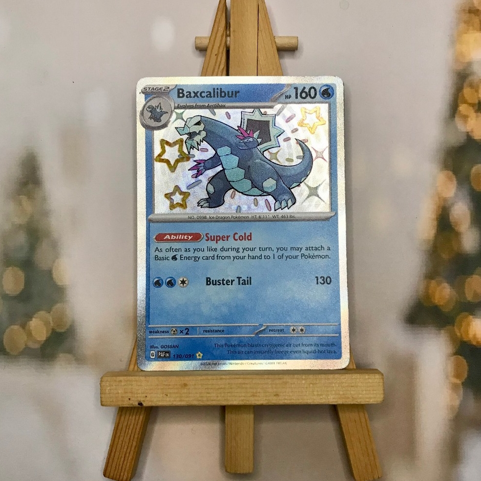 Thẻ hình Pokemon Baxcalibur 130/091 - Bài lẻ Shiny Rare tiếng Anh chính hãng Nintendo - Nhập khẩu Hoa Kỳ USA ➖➖➖➖➖➖ Sản phẩm chính hãng TCG, được sản xuất bởi The Pokémon Company, nên quý khách có thể yên tâm về chất lượng và độ độc đáo của từng thẻ bài. Chúng tôi cam kết chỉ bán hàng chính hãng và nói không với hàng nhái, hàng giả mạo. Mỗi thẻ bài đều ở trong tình trạng NM-M và sẽ là một phần không thể thiếu cho bộ sưu tập của bạn, giúp bạn có những trải nghiệm thú vị và phong phú. Chất liệu chính của thẻ bài là giấy cao cấp, đảm bảo độ bền và màu sắc sống động, chi tiết. Dòng sản phẩm: TCG Hãng sản xuất: The Pokémon Company Chất liệu: Giấy Kích thước thẻ bài: 6,3×8,8cm ➖➖➖➖➖➖ Thông Báo Hướng Dẫn Bảo Quản và Kiểm Tra Sản Phẩm Thẻ Bài: ✅ Quay Video Khi Mở Kiện: Để đảm bảo quyền lợi, khi nhận sản phẩm, vui lòng quay video quá trình mở kiện. Video này sẽ là bằng chứng đối chiếu quý giá, giúp chúng tôi nhanh chóng giải quyết mọi vấn đề và thắc mắc của bạn. ✅ Mọi sản phẩm như Gói thẻ bài (Pack lẻ), Booster Box, Bộ bài nguyên hộp phải còn nguyên niêm phong và bao bì. Chỉ những sản phẩm còn giữ nguyên vẹn mới được chấp nhận đổi trả hoàn tiền. ✅ Các lá bài chính hãng có thể bị cong khi tiếp xúc với không khí. Đây là hiện tượng bình thường, bạn có thể khắc phục bằng cách sử dụng bọc bài, cất vào album, hoặc ép giữa quyển vở dày. ✅ Một số lá bài có thể xuất hiện các vết trầy xước nhỏ, nhưng không ảnh hưởng đến chất lượng và quá trình sử dụng của bạn. ✅ Chúng tôi không chịu trách nhiệm về nội dung bên trong các gói và hộp thẻ bài do đóng gói và niêm phong từ nhà sản xuất. Mọi thắc mắc và khiếu nại, vui lòng liên hệ trực tiếp với chúng tôi, ➖➖➖➖➖➖