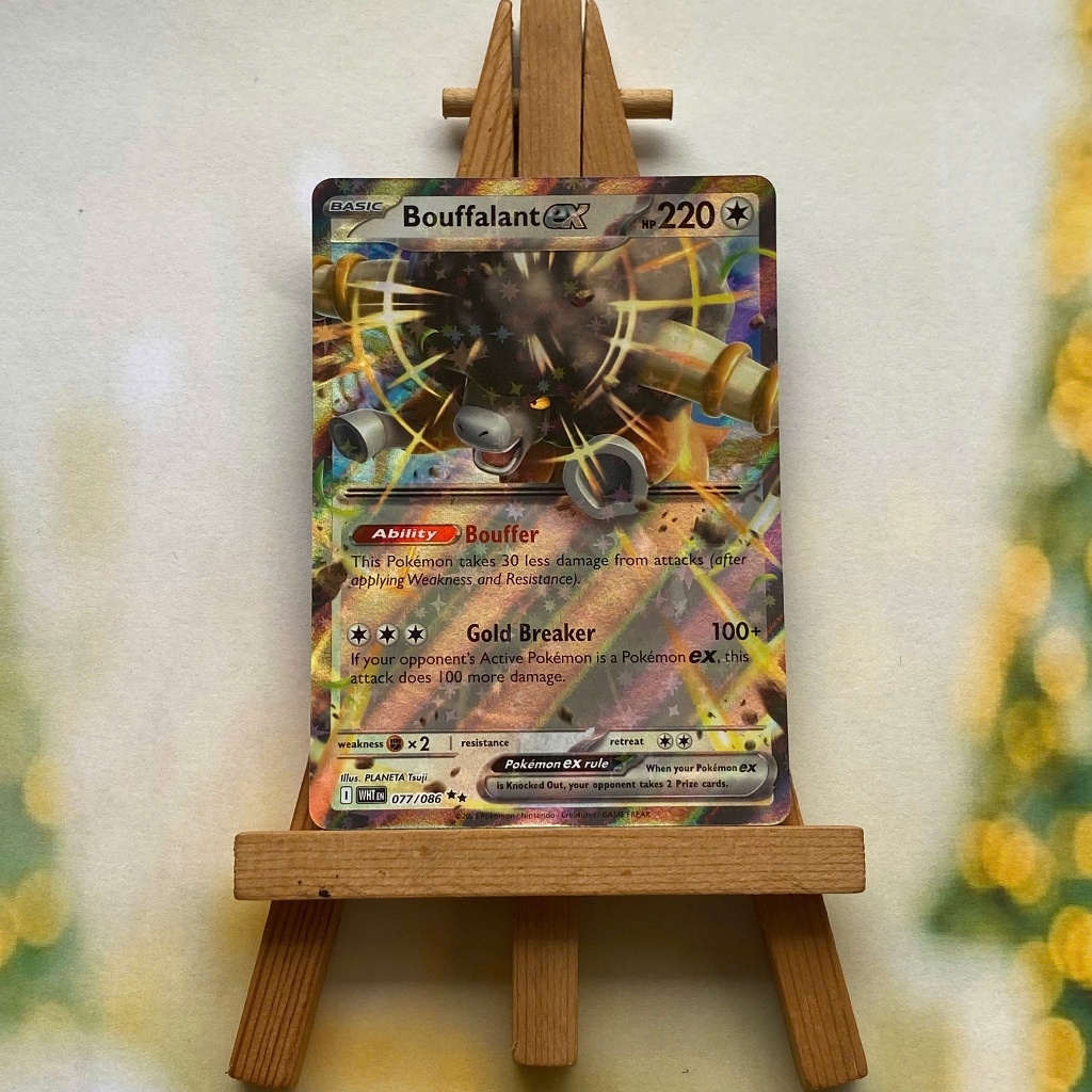 Thẻ hình Pokemon Bouffalant ex 077/086 - Lá bài lẻ White Flare Ultra Rare tiếng Anh Nintendo - Nhập khẩu Hoa Kỳ USA ➖➖➖➖➖➖ Sản phẩm TCG, được sản xuất bởi The Pokémon Company, nên quý khách có thể yên tâm về chất lượng và độ độc đáo của từng thẻ bài. Chúng tôi cam kết nói không với hàng nhái, hàng giả mạo. Mỗi thẻ bài đều ở trong tình trạng NM-M và sẽ là một phần không thể thiếu cho bộ sưu tập của bạn, giúp bạn có những trải nghiệm thú vị và phong phú. Chất liệu chính của thẻ bài là giấy cao cấp, đảm bảo độ bền và màu sắc sống động, chi tiết. Dòng sản phẩm: TCG Hãng sản xuất: The Pokémon Company Chất liệu: Giấy Kích thước thẻ bài: 6,3×8,8cm ➖➖➖➖➖➖ Thông Báo Hướng Dẫn Bảo Quản và Kiểm Tra Sản Phẩm Thẻ Bài: ✅ Quay Video Khi Mở Kiện: Để đảm bảo quyền lợi, khi nhận sản phẩm, vui lòng quay video quá trình mở kiện. Video này sẽ là bằng chứng đối chiếu quý giá, giúp chúng tôi nhanh chóng giải quyết mọi vấn đề và thắc mắc của bạn. ✅ Mọi sản phẩm như Gói thẻ bài (Pack lẻ), Booster Box, Bộ bài nguyên hộp phải còn nguyên niêm phong và bao bì. Chỉ những sản phẩm còn giữ nguyên vẹn mới được chấp nhận đổi trả hoàn tiền. ✅ Các lá bài có thể bị cong khi tiếp xúc với không khí. Đây là hiện tượng bình thường, bạn có thể khắc phục bằng cách sử dụng bọc bài, cất vào album, hoặc ép giữa quyển vở dày. ✅ Một số lá bài có thể xuất hiện các vết trầy xước nhỏ, nhưng không ảnh hưởng đến chất lượng và quá trình sử dụng của bạn. ✅ Chúng tôi không chịu trách nhiệm về nội dung bên trong các gói và hộp thẻ bài do đóng gói và niêm phong từ nhà sản xuất. Mọi thắc mắc và khiếu nại, vui lòng liên hệ trực tiếp với chúng tôi.