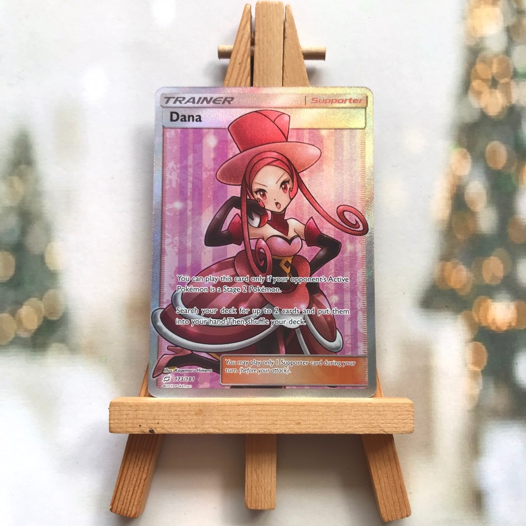 Thẻ hình Pokemon Dana 173/181 - Bài lẻ Full Art Ultra Rare tiếng Anh chính hãng Nintendo - Nhập khẩu Hoa Kỳ USA ➖➖➖➖➖➖ Sản phẩm chính hãng TCG, được sản xuất bởi The Pokémon Company, nên quý khách có thể yên tâm về chất lượng và độ độc đáo của từng thẻ bài. Chúng tôi cam kết chỉ bán hàng chính hãng và nói không với hàng nhái, hàng giả mạo. Mỗi thẻ bài đều ở trong tình trạng NM-M và sẽ là một phần không thể thiếu cho bộ sưu tập của bạn, giúp bạn có những trải nghiệm thú vị và phong phú. Chất liệu chính của thẻ bài là giấy cao cấp, đảm bảo độ bền và màu sắc sống động, chi tiết. Dòng sản phẩm: TCG Hãng sản xuất: The Pokémon Company Chất liệu: Giấy Kích thước thẻ bài: 6,3×8,8cm ➖➖➖➖➖➖ Thông Báo Hướng Dẫn Bảo Quản và Kiểm Tra Sản Phẩm Thẻ Bài: ✅ Quay Video Khi Mở Kiện: Để đảm bảo quyền lợi, khi nhận sản phẩm, vui lòng quay video quá trình mở kiện. Video này sẽ là bằng chứng đối chiếu quý giá, giúp chúng tôi nhanh chóng giải quyết mọi vấn đề và thắc mắc của bạn. ✅ Mọi sản phẩm như Gói thẻ bài (Pack lẻ), Booster Box, Bộ bài nguyên hộp phải còn nguyên niêm phong và bao bì. Chỉ những sản phẩm còn giữ nguyên vẹn mới được chấp nhận đổi trả hoàn tiền. ✅ Các lá bài chính hãng có thể bị cong khi tiếp xúc với không khí. Đây là hiện tượng bình thường, bạn có thể khắc phục bằng cách sử dụng bọc bài, cất vào album, hoặc ép giữa quyển vở dày. ✅ Một số lá bài có thể xuất hiện các vết trầy xước nhỏ, nhưng không ảnh hưởng đến chất lượng và quá trình sử dụng của bạn. ✅ Chúng tôi không chịu trách nhiệm về nội dung bên trong các gói và hộp thẻ bài do đóng gói và niêm phong từ nhà sản xuất. Mọi thắc mắc và khiếu nại, vui lòng liên hệ trực tiếp với chúng tôi, ➖➖➖➖➖➖