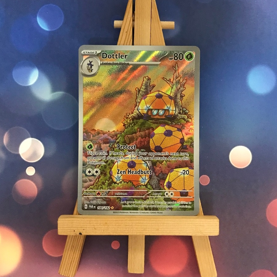 Thẻ hình Pokemon Dottler 184/182 - Bài lẻ Illustration Rare tiếng Anh chính hãng Nintendo - Nhập khẩu Hoa Kỳ USA ➖➖➖➖➖➖ Sản phẩm chính hãng TCG, được sản xuất bởi The Pokémon Company, nên quý khách có thể yên tâm về chất lượng và độ độc đáo của từng thẻ bài. Chúng tôi cam kết chỉ bán hàng chính hãng và nói không với hàng nhái, hàng giả mạo. Mỗi thẻ bài đều ở trong tình trạng NM-M và sẽ là một phần không thể thiếu cho bộ sưu tập của bạn, giúp bạn có những trải nghiệm thú vị và phong phú. Chất liệu chính của thẻ bài là giấy cao cấp, đảm bảo độ bền và màu sắc sống động, chi tiết. Dòng sản phẩm: TCG Hãng sản xuất: The Pokémon Company Chất liệu: Giấy Kích thước thẻ bài: 6,3×8,8cm ➖➖➖➖➖➖ Thông Báo Hướng Dẫn Bảo Quản và Kiểm Tra Sản Phẩm Thẻ Bài: ✅ Quay Video Khi Mở Kiện: Để đảm bảo quyền lợi, khi nhận sản phẩm, vui lòng quay video quá trình mở kiện. Video này sẽ là bằng chứng đối chiếu quý giá, giúp chúng tôi nhanh chóng giải quyết mọi vấn đề và thắc mắc của bạn. ✅ Mọi sản phẩm như Gói thẻ bài (Pack lẻ), Booster Box, Bộ bài nguyên hộp phải còn nguyên niêm phong và bao bì. Chỉ những sản phẩm còn giữ nguyên vẹn mới được chấp nhận đổi trả hoàn tiền. ✅ Các lá bài chính hãng có thể bị cong khi tiếp xúc với không khí. Đây là hiện tượng bình thường, bạn có thể khắc phục bằng cách sử dụng bọc bài, cất vào album, hoặc ép giữa quyển vở dày. ✅ Một số lá bài có thể xuất hiện các vết trầy xước nhỏ, nhưng không ảnh hưởng đến chất lượng và quá trình sử dụng của bạn. ✅ Chúng tôi không chịu trách nhiệm về nội dung bên trong các gói và hộp thẻ bài do đóng gói và niêm phong từ nhà sản xuất. Mọi thắc mắc và khiếu nại, vui lòng liên hệ trực tiếp với chúng tôi, ➖➖➖➖➖➖