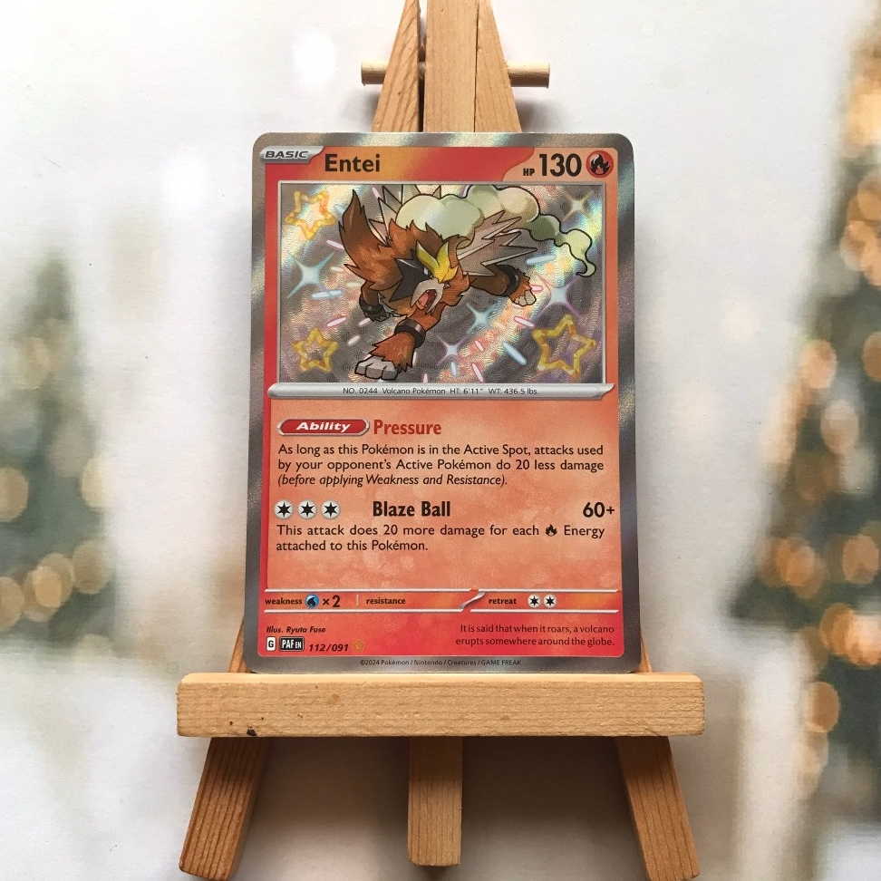 Thẻ hình Pokemon Entei 112/091 - Lá bài Scarlet & Violet: Paldean Fates Shiny Rare tiếng Anh chính hãng Nintendo - Nhập khẩu Hoa Kỳ USA ➖➖➖➖➖➖ Sản phẩm chính hãng TCG, được sản xuất bởi The Pokémon Company, nên quý khách có thể yên tâm về chất lượng và độ độc đáo của từng thẻ bài. Chúng tôi cam kết chỉ bán hàng chính hãng và nói không với hàng nhái, hàng giả mạo. Mỗi thẻ bài đều ở trong tình trạng NM-M và sẽ là một phần không thể thiếu cho bộ sưu tập của bạn, giúp bạn có những trải nghiệm thú vị và phong phú. Chất liệu chính của thẻ bài là giấy cao cấp, đảm bảo độ bền và màu sắc sống động, chi tiết. Dòng sản phẩm: TCG Hãng sản xuất: The Pokémon Company Chất liệu: Giấy Kích thước thẻ bài: 6,3×8,8cm ➖➖➖➖➖➖ Thông Báo Hướng Dẫn Bảo Quản và Kiểm Tra Sản Phẩm Thẻ Bài: ✅ Quay Video Khi Mở Kiện: Để đảm bảo quyền lợi, khi nhận sản phẩm, vui lòng quay video quá trình mở kiện. Video này sẽ là bằng chứng đối chiếu quý giá, giúp chúng tôi nhanh chóng giải quyết mọi vấn đề và thắc mắc của bạn. ✅ Mọi sản phẩm như Gói thẻ bài (Pack lẻ), Booster Box, Bộ bài nguyên hộp phải còn nguyên niêm phong và bao bì. Chỉ những sản phẩm còn giữ nguyên vẹn mới được chấp nhận đổi trả hoàn tiền. ✅ Các lá bài chính hãng có thể bị cong khi tiếp xúc với không khí. Đây là hiện tượng bình thường, bạn có thể khắc phục bằng cách sử dụng bọc bài, cất vào album, hoặc ép giữa quyển vở dày. ✅ Một số lá bài có thể xuất hiện các vết trầy xước nhỏ, nhưng không ảnh hưởng đến chất lượng và quá trình sử dụng của bạn. ✅ Chúng tôi không chịu trách nhiệm về nội dung bên trong các gói và hộp thẻ bài do đóng gói và niêm phong từ nhà sản xuất. Mọi thắc mắc và khiếu nại, vui lòng liên hệ trực tiếp với chúng tôi.