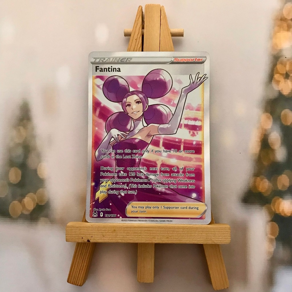 Thẻ hình Pokemon Fantina 191/196 - Bài lẻ Full Art Ultra Rare tiếng Anh chính hãng Nintendo - Nhập khẩu Hoa Kỳ USA ➖➖➖➖➖➖ Sản phẩm chính hãng TCG, được sản xuất bởi The Pokémon Company, nên quý khách có thể yên tâm về chất lượng và độ độc đáo của từng thẻ bài. Chúng tôi cam kết chỉ bán hàng chính hãng và nói không với hàng nhái, hàng giả mạo. Mỗi thẻ bài đều ở trong tình trạng NM-M và sẽ là một phần không thể thiếu cho bộ sưu tập của bạn, giúp bạn có những trải nghiệm thú vị và phong phú. Chất liệu chính của thẻ bài là giấy cao cấp, đảm bảo độ bền và màu sắc sống động, chi tiết. Dòng sản phẩm: TCG Hãng sản xuất: The Pokémon Company Chất liệu: Giấy Kích thước thẻ bài: 6,3×8,8cm ➖➖➖➖➖➖ Thông Báo Hướng Dẫn Bảo Quản và Kiểm Tra Sản Phẩm Thẻ Bài: ✅ Quay Video Khi Mở Kiện: Để đảm bảo quyền lợi, khi nhận sản phẩm, vui lòng quay video quá trình mở kiện. Video này sẽ là bằng chứng đối chiếu quý giá, giúp chúng tôi nhanh chóng giải quyết mọi vấn đề và thắc mắc của bạn. ✅ Mọi sản phẩm như Gói thẻ bài (Pack lẻ), Booster Box, Bộ bài nguyên hộp phải còn nguyên niêm phong và bao bì. Chỉ những sản phẩm còn giữ nguyên vẹn mới được chấp nhận đổi trả hoàn tiền. ✅ Các lá bài chính hãng có thể bị cong khi tiếp xúc với không khí. Đây là hiện tượng bình thường, bạn có thể khắc phục bằng cách sử dụng bọc bài, cất vào album, hoặc ép giữa quyển vở dày. ✅ Một số lá bài có thể xuất hiện các vết trầy xước nhỏ, nhưng không ảnh hưởng đến chất lượng và quá trình sử dụng của bạn. ✅ Chúng tôi không chịu trách nhiệm về nội dung bên trong các gói và hộp thẻ bài do đóng gói và niêm phong từ nhà sản xuất. Mọi thắc mắc và khiếu nại, vui lòng liên hệ trực tiếp với chúng tôi, ➖➖➖➖➖➖