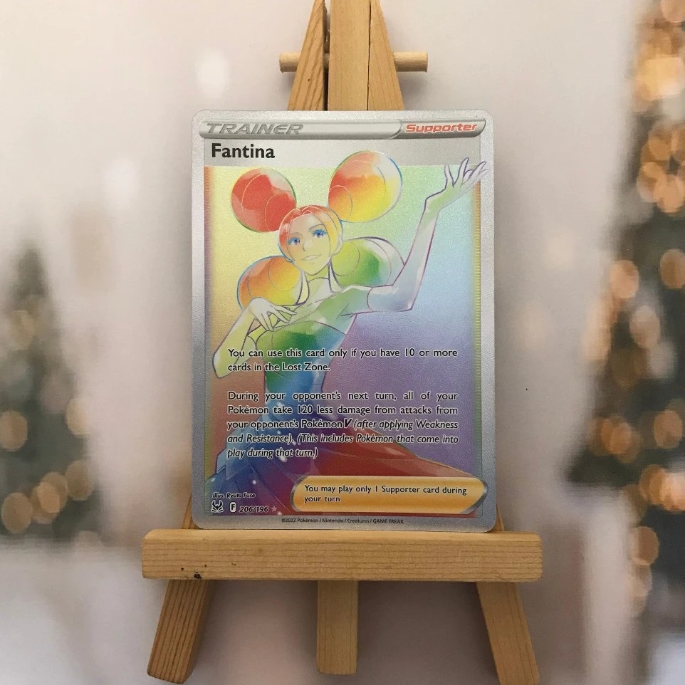 Thẻ hình Pokemon Fantina 206/196 - Lá bài lẻ Sword & Shield: Lost Origin Hyper Rare tiếng Anh chính hãng Nintendo - Nhập khẩu Hoa Kỳ USA ➖➖➖➖➖➖ Sản phẩm chính hãng TCG, được sản xuất bởi The Pokémon Company, nên quý khách có thể yên tâm về chất lượng và độ độc đáo của từng thẻ bài. Chúng tôi cam kết chỉ bán hàng chính hãng và nói không với hàng nhái, hàng giả mạo. Mỗi thẻ bài đều ở trong tình trạng NM-M và sẽ là một phần không thể thiếu cho bộ sưu tập của bạn, giúp bạn có những trải nghiệm thú vị và phong phú. Chất liệu chính của thẻ bài là giấy cao cấp, đảm bảo độ bền và màu sắc sống động, chi tiết. Dòng sản phẩm: TCG Hãng sản xuất: The Pokémon Company Chất liệu: Giấy Kích thước thẻ bài: 6,3×8,8cm ➖➖➖➖➖➖ Thông Báo Hướng Dẫn Bảo Quản và Kiểm Tra Sản Phẩm Thẻ Bài: ✅ Quay Video Khi Mở Kiện: Để đảm bảo quyền lợi, khi nhận sản phẩm, vui lòng quay video quá trình mở kiện. Video này sẽ là bằng chứng đối chiếu quý giá, giúp chúng tôi nhanh chóng giải quyết mọi vấn đề và thắc mắc của bạn. ✅ Mọi sản phẩm như Gói thẻ bài (Pack lẻ), Booster Box, Bộ bài nguyên hộp phải còn nguyên niêm phong và bao bì. Chỉ những sản phẩm còn giữ nguyên vẹn mới được chấp nhận đổi trả hoàn tiền. ✅ Các lá bài chính hãng có thể bị cong khi tiếp xúc với không khí. Đây là hiện tượng bình thường, bạn có thể khắc phục bằng cách sử dụng bọc bài, cất vào album, hoặc ép giữa quyển vở dày. ✅ Một số lá bài có thể xuất hiện các vết trầy xước nhỏ, nhưng không ảnh hưởng đến chất lượng và quá trình sử dụng của bạn. ✅ Chúng tôi không chịu trách nhiệm về nội dung bên trong các gói và hộp thẻ bài do đóng gói và niêm phong từ nhà sản xuất. Mọi thắc mắc và khiếu nại, vui lòng liên hệ trực tiếp với chúng tôi, ➖➖➖➖➖➖