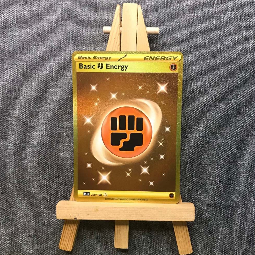 Thẻ hình Pokemon Fighting Energy 258/198 - Lá bài lẻ Scarlet & Violet Base Set Gold Secret Rare tiếng Anh chính hãng Nintendo - Nhập khẩu Hoa Kỳ USA ➖➖➖➖➖➖ Sản phẩm chính hãng TCG, được sản xuất bởi The Pokémon Company, nên quý khách có thể yên tâm về chất lượng và độ độc đáo của từng thẻ bài. Chúng tôi cam kết chỉ bán hàng chính hãng và nói không với hàng nhái, hàng giả mạo. Mỗi thẻ bài đều ở trong tình trạng NM-M và sẽ là một phần không thể thiếu cho bộ sưu tập của bạn, giúp bạn có những trải nghiệm thú vị và phong phú. Chất liệu chính của thẻ bài là giấy cao cấp, đảm bảo độ bền và màu sắc sống động, chi tiết. Dòng sản phẩm: TCG Hãng sản xuất: The Pokémon Company Chất liệu: Giấy Kích thước thẻ bài: 6,3×8,8cm ➖➖➖➖➖➖ Thông Báo Hướng Dẫn Bảo Quản và Kiểm Tra Sản Phẩm Thẻ Bài: ✅ Quay Video Khi Mở Kiện: Để đảm bảo quyền lợi, khi nhận sản phẩm, vui lòng quay video quá trình mở kiện. Video này sẽ là bằng chứng đối chiếu quý giá, giúp chúng tôi nhanh chóng giải quyết mọi vấn đề và thắc mắc của bạn. ✅ Mọi sản phẩm như Gói thẻ bài (Pack lẻ), Booster Box, Bộ bài nguyên hộp phải còn nguyên niêm phong và bao bì. Chỉ những sản phẩm còn giữ nguyên vẹn mới được chấp nhận đổi trả hoàn tiền. ✅ Các lá bài chính hãng có thể bị cong khi tiếp xúc với không khí. Đây là hiện tượng bình thường, bạn có thể khắc phục bằng cách sử dụng bọc bài, cất vào album, hoặc ép giữa quyển vở dày. ✅ Một số lá bài có thể xuất hiện các vết trầy xước nhỏ, nhưng không ảnh hưởng đến chất lượng và quá trình sử dụng của bạn. ✅ Chúng tôi không chịu trách nhiệm về nội dung bên trong các gói và hộp thẻ bài do đóng gói và niêm phong từ nhà sản xuất. Mọi thắc mắc và khiếu nại, vui lòng liên hệ trực tiếp với chúng tôi, ➖➖➖➖➖➖