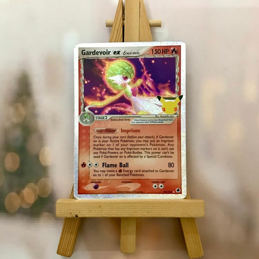Thẻ hình Pokemon Gardevoir ex 93/101- Bài lẻ Ultra Rare 25th Celebrations (Classic Collection) tiếng Anh chính hãng Nintendo - Nhập khẩu Hoa Kỳ USA ➖➖➖➖➖➖ Sản phẩm chính hãng TCG, được sản xuất bởi The Pokémon Company, nên quý khách có thể yên tâm về chất lượng và độ độc đáo của từng thẻ bài. Chúng tôi cam kết chỉ bán hàng chính hãng và nói không với hàng nhái, hàng giả mạo. Mỗi thẻ bài đều ở trong tình trạng NM-M và sẽ là một phần không thể thiếu cho bộ sưu tập của bạn, giúp bạn có những trải nghiệm thú vị và phong phú. Chất liệu chính của thẻ bài là giấy cao cấp, đảm bảo độ bền và màu sắc sống động, chi tiết. Dòng sản phẩm: TCG Hãng sản xuất: The Pokémon Company Chất liệu: Giấy Kích thước thẻ bài: 6,3×8,8cm ➖➖➖➖➖➖ Thông Báo Hướng Dẫn Bảo Quản và Kiểm Tra Sản Phẩm Thẻ Bài: ✅ Quay Video Khi Mở Kiện: Để đảm bảo quyền lợi, khi nhận sản phẩm, vui lòng quay video quá trình mở kiện. Video này sẽ là bằng chứng đối chiếu quý giá, giúp chúng tôi nhanh chóng giải quyết mọi vấn đề và thắc mắc của bạn. ✅ Mọi sản phẩm như Gói thẻ bài (Pack lẻ), Booster Box, Bộ bài nguyên hộp phải còn nguyên niêm phong và bao bì. Chỉ những sản phẩm còn giữ nguyên vẹn mới được chấp nhận đổi trả hoàn tiền. ✅ Các lá bài chính hãng có thể bị cong khi tiếp xúc với không khí. Đây là hiện tượng bình thường, bạn có thể khắc phục bằng cách sử dụng bọc bài, cất vào album, hoặc ép giữa quyển vở dày. ✅ Một số lá bài có thể xuất hiện các vết trầy xước nhỏ, nhưng không ảnh hưởng đến chất lượng và quá trình sử dụng của bạn. ✅ Chúng tôi không chịu trách nhiệm về nội dung bên trong các gói và hộp thẻ bài do đóng gói và niêm phong từ nhà sản xuất. Mọi thắc mắc và khiếu nại, vui lòng liên hệ trực tiếp với chúng tôi, ➖➖➖➖➖➖