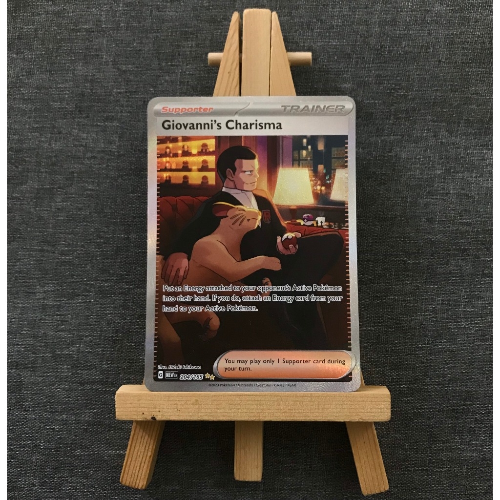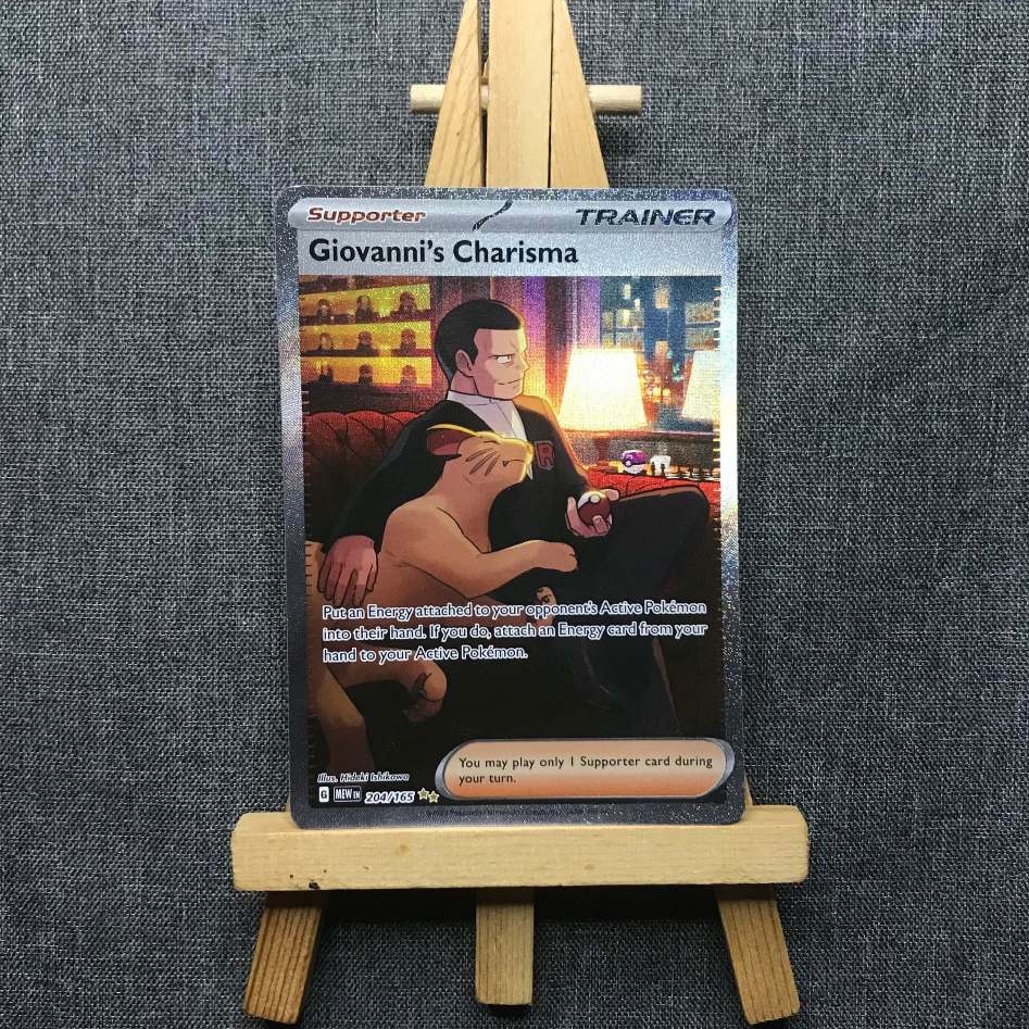 Thẻ hình Pokemon Giovanni's Charisma 204/165 - Bài lẻ Special Illustration Rare tiếng Anh chính Nintendo - Nhập khẩu Hoa Kỳ USA ➖➖➖➖➖➖ Sản phẩm chính hãng TCG, được sản xuất bởi The Pokémon Company, nên quý khách có thể yên tâm về chất lượng và độ độc đáo của từng thẻ bài. Chúng tôi cam kết chỉ bán hàng chính hãng và nói không với hàng nhái, hàng giả mạo. Mỗi thẻ bài đều ở trong tình trạng NM-M và sẽ là một phần không thể thiếu cho bộ sưu tập của bạn, giúp bạn có những trải nghiệm thú vị và phong phú. Chất liệu chính của thẻ bài là giấy cao cấp, đảm bảo độ bền và màu sắc sống động, chi tiết. Dòng sản phẩm: TCG Hãng sản xuất: The Pokémon Company Chất liệu: Giấy Kích thước thẻ bài: 6,3×8,8cm ➖➖➖➖➖➖ Thông Báo Hướng Dẫn Bảo Quản và Kiểm Tra Sản Phẩm Thẻ Bài: ✅ Quay Video Khi Mở Kiện: Để đảm bảo quyền lợi, khi nhận sản phẩm, vui lòng quay video quá trình mở kiện. Video này sẽ là bằng chứng đối chiếu quý giá, giúp chúng tôi nhanh chóng giải quyết mọi vấn đề và thắc mắc của bạn. ✅ Mọi sản phẩm như Gói thẻ bài (Pack lẻ), Booster Box, Bộ bài nguyên hộp phải còn nguyên niêm phong và bao bì. Chỉ những sản phẩm còn giữ nguyên vẹn mới được chấp nhận đổi trả hoàn tiền. ✅ Các lá bài chính hãng có thể bị cong khi tiếp xúc với không khí. Đây là hiện tượng bình thường, bạn có thể khắc phục bằng cách sử dụng bọc bài, cất vào album, hoặc ép giữa quyển vở dày. ✅ Một số lá bài có thể xuất hiện các vết trầy xước nhỏ, nhưng không ảnh hưởng đến chất lượng và quá trình sử dụng của bạn. ✅ Chúng tôi không chịu trách nhiệm về nội dung bên trong các gói và hộp thẻ bài do đóng gói và niêm phong từ nhà sản xuất. Mọi thắc mắc và khiếu nại, vui lòng liên hệ trực tiếp với chúng tôi, ➖➖➖➖➖➖