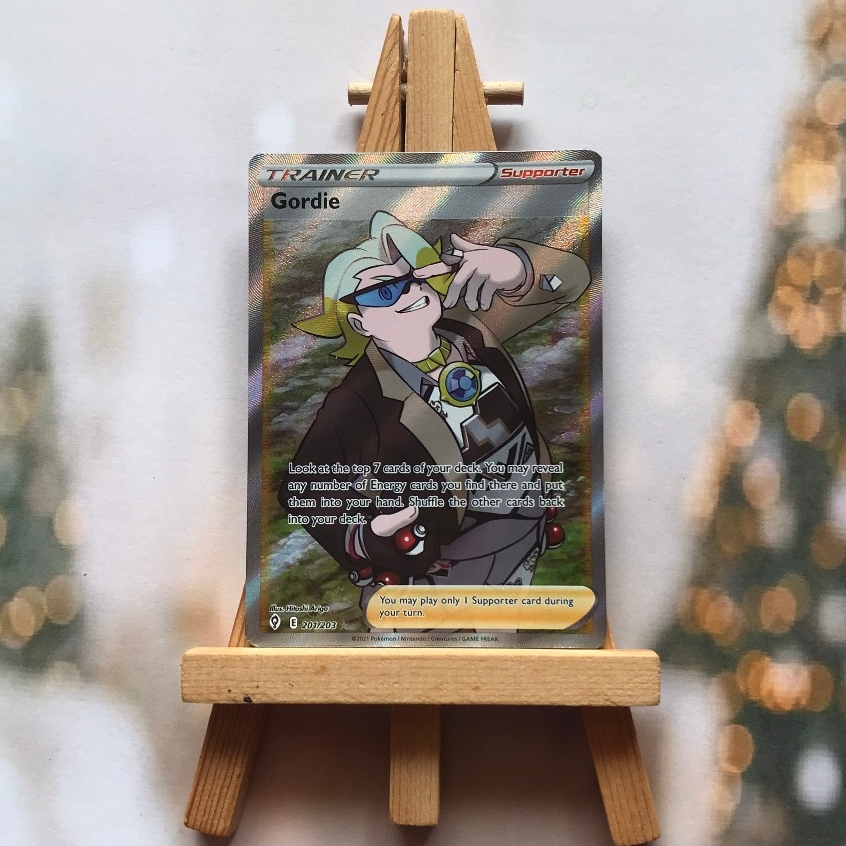 Thẻ hình Pokemon Gordie 201/203 - Bài lẻ Full Art Ultra Rare tiếng Anh chính hãng Nintendo - Nhập khẩu Hoa Kỳ USA ➖➖➖➖➖➖ Sản phẩm chính hãng TCG, được sản xuất bởi The Pokémon Company, nên quý khách có thể yên tâm về chất lượng và độ độc đáo của từng thẻ bài. Chúng tôi cam kết chỉ bán hàng chính hãng và nói không với hàng nhái, hàng giả mạo. Mỗi thẻ bài đều ở trong tình trạng NM-M và sẽ là một phần không thể thiếu cho bộ sưu tập của bạn, giúp bạn có những trải nghiệm thú vị và phong phú. Chất liệu chính của thẻ bài là giấy cao cấp, đảm bảo độ bền và màu sắc sống động, chi tiết. Dòng sản phẩm: TCG Hãng sản xuất: The Pokémon Company Chất liệu: Giấy Kích thước thẻ bài: 6,3×8,8cm ➖➖➖➖➖➖ Thông Báo Hướng Dẫn Bảo Quản và Kiểm Tra Sản Phẩm Thẻ Bài: ✅ Quay Video Khi Mở Kiện: Để đảm bảo quyền lợi, khi nhận sản phẩm, vui lòng quay video quá trình mở kiện. Video này sẽ là bằng chứng đối chiếu quý giá, giúp chúng tôi nhanh chóng giải quyết mọi vấn đề và thắc mắc của bạn. ✅ Mọi sản phẩm như Gói thẻ bài (Pack lẻ), Booster Box, Bộ bài nguyên hộp phải còn nguyên niêm phong và bao bì. Chỉ những sản phẩm còn giữ nguyên vẹn mới được chấp nhận đổi trả hoàn tiền. ✅ Các lá bài chính hãng có thể bị cong khi tiếp xúc với không khí. Đây là hiện tượng bình thường, bạn có thể khắc phục bằng cách sử dụng bọc bài, cất vào album, hoặc ép giữa quyển vở dày. ✅ Một số lá bài có thể xuất hiện các vết trầy xước nhỏ, nhưng không ảnh hưởng đến chất lượng và quá trình sử dụng của bạn. ✅ Chúng tôi không chịu trách nhiệm về nội dung bên trong các gói và hộp thẻ bài do đóng gói và niêm phong từ nhà sản xuất. Mọi thắc mắc và khiếu nại, vui lòng liên hệ trực tiếp với chúng tôi, ➖➖➖➖➖➖