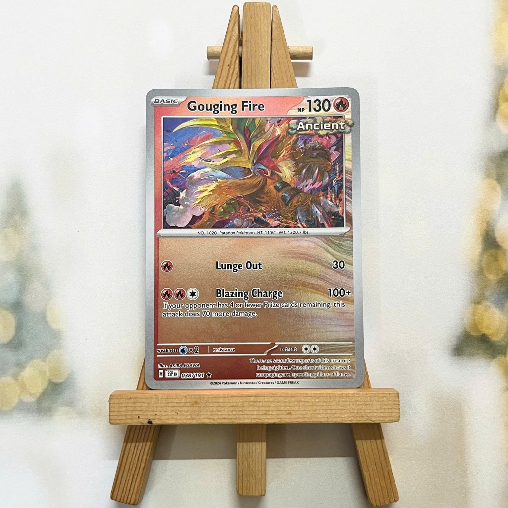 Thẻ hình Pokemon Gouging Fire 038/191 - Lá bài lẻ Surging Sparks Reverse Holo Rare tiếng Anh chính hãng Nintendo - Nhập khẩu Hoa Kỳ USA ➖➖➖➖➖➖ Sản phẩm chính hãng TCG, được sản xuất bởi The Pokémon Company, nên quý khách có thể yên tâm về chất lượng và độ độc đáo của từng thẻ bài. Chúng tôi cam kết chỉ bán hàng chính hãng và nói không với hàng nhái, hàng giả mạo. Mỗi thẻ bài đều ở trong tình trạng NM-M và sẽ là một phần không thể thiếu cho bộ sưu tập của bạn, giúp bạn có những trải nghiệm thú vị và phong phú. Chất liệu chính của thẻ bài là giấy cao cấp, đảm bảo độ bền và màu sắc sống động, chi tiết. Dòng sản phẩm: TCG Hãng sản xuất: The Pokémon Company Chất liệu: Giấy Kích thước thẻ bài: 6,3×8,8cm ➖➖➖➖➖➖ Thông Báo Hướng Dẫn Bảo Quản và Kiểm Tra Sản Phẩm Thẻ Bài: ✅ Quay Video Khi Mở Kiện: Để đảm bảo quyền lợi, khi nhận sản phẩm, vui lòng quay video quá trình mở kiện. Video này sẽ là bằng chứng đối chiếu quý giá, giúp chúng tôi nhanh chóng giải quyết mọi vấn đề và thắc mắc của bạn. ✅ Mọi sản phẩm như Gói thẻ bài (Pack lẻ), Booster Box, Bộ bài nguyên hộp phải còn nguyên niêm phong và bao bì. Chỉ những sản phẩm còn giữ nguyên vẹn mới được chấp nhận đổi trả hoàn tiền. ✅ Các lá bài chính hãng có thể bị cong khi tiếp xúc với không khí. Đây là hiện tượng bình thường, bạn có thể khắc phục bằng cách sử dụng bọc bài, cất vào album, hoặc ép giữa quyển vở dày. ✅ Một số lá bài có thể xuất hiện các vết trầy xước nhỏ, nhưng không ảnh hưởng đến chất lượng và quá trình sử dụng của bạn. ✅ Chúng tôi không chịu trách nhiệm về nội dung bên trong các gói và hộp thẻ bài do đóng gói và niêm phong từ nhà sản xuất. Mọi thắc mắc và khiếu nại, vui lòng liên hệ trực tiếp với chúng tôi.