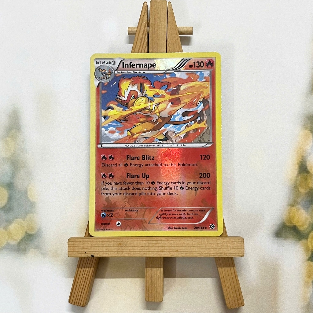 Thẻ hình Pokemon Infernape 20/114 - Lá bài lẻ XY: Steam Siege Rare Reverse Holo tiếng Anh chính hãng Nintendo - Nhập khẩu Hoa Kỳ USA ➖➖➖➖➖➖ Sản phẩm chính hãng TCG, được sản xuất bởi The Pokémon Company, nên quý khách có thể yên tâm về chất lượng và độ độc đáo của từng thẻ bài. Chúng tôi cam kết chỉ bán hàng chính hãng và nói không với hàng nhái, hàng giả mạo. Mỗi thẻ bài đều ở trong tình trạng NM-M và sẽ là một phần không thể thiếu cho bộ sưu tập của bạn, giúp bạn có những trải nghiệm thú vị và phong phú. Chất liệu chính của thẻ bài là giấy cao cấp, đảm bảo độ bền và màu sắc sống động, chi tiết. Dòng sản phẩm: TCG Hãng sản xuất: The Pokémon Company Chất liệu: Giấy Kích thước thẻ bài: 6,3×8,8cm ➖➖➖➖➖➖ Thông Báo Hướng Dẫn Bảo Quản và Kiểm Tra Sản Phẩm Thẻ Bài: ✅ Quay Video Khi Mở Kiện: Để đảm bảo quyền lợi, khi nhận sản phẩm, vui lòng quay video quá trình mở kiện. Video này sẽ là bằng chứng đối chiếu quý giá, giúp chúng tôi nhanh chóng giải quyết mọi vấn đề và thắc mắc của bạn. ✅ Mọi sản phẩm như Gói thẻ bài (Pack lẻ), Booster Box, Bộ bài nguyên hộp phải còn nguyên niêm phong và bao bì. Chỉ những sản phẩm còn giữ nguyên vẹn mới được chấp nhận đổi trả hoàn tiền. ✅ Các lá bài chính hãng có thể bị cong khi tiếp xúc với không khí. Đây là hiện tượng bình thường, bạn có thể khắc phục bằng cách sử dụng bọc bài, cất vào album, hoặc ép giữa quyển vở dày. ✅ Một số lá bài có thể xuất hiện các vết trầy xước nhỏ, nhưng không ảnh hưởng đến chất lượng và quá trình sử dụng của bạn. ✅ Chúng tôi không chịu trách nhiệm về nội dung bên trong các gói và hộp thẻ bài do đóng gói và niêm phong từ nhà sản xuất. Mọi thắc mắc và khiếu nại, vui lòng liên hệ trực tiếp với chúng tôi, ➖➖➖➖➖➖