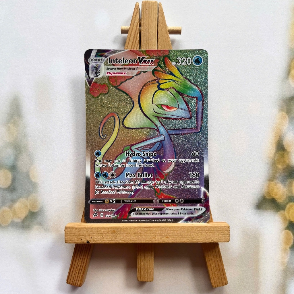 Thẻ hình Pokemon Inteleon VMAX 195/192 - Lá bài lẻ Rebel Clash Hyper Rare tiếng Anh chính hãng Nintendo - Nhập khẩu Hoa Kỳ USA ➖➖➖➖➖➖ Sản phẩm chính hãng TCG, được sản xuất bởi The Pokémon Company, nên quý khách có thể yên tâm về chất lượng và độ độc đáo của từng thẻ bài. Chúng tôi cam kết chỉ bán hàng chính hãng và nói không với hàng nhái, hàng giả mạo. Mỗi thẻ bài đều ở trong tình trạng NM-M và sẽ là một phần không thể thiếu cho bộ sưu tập của bạn, giúp bạn có những trải nghiệm thú vị và phong phú. Chất liệu chính của thẻ bài là giấy cao cấp, đảm bảo độ bền và màu sắc sống động, chi tiết. Dòng sản phẩm: TCG Hãng sản xuất: The Pokémon Company Chất liệu: Giấy Kích thước thẻ bài: 6,3×8,8cm ➖➖➖➖➖➖ Thông Báo Hướng Dẫn Bảo Quản và Kiểm Tra Sản Phẩm Thẻ Bài: ✅ Quay Video Khi Mở Kiện: Để đảm bảo quyền lợi, khi nhận sản phẩm, vui lòng quay video quá trình mở kiện. Video này sẽ là bằng chứng đối chiếu quý giá, giúp chúng tôi nhanh chóng giải quyết mọi vấn đề và thắc mắc của bạn. ✅ Mọi sản phẩm như Gói thẻ bài (Pack lẻ), Booster Box, Bộ bài nguyên hộp phải còn nguyên niêm phong và bao bì. Chỉ những sản phẩm còn giữ nguyên vẹn mới được chấp nhận đổi trả hoàn tiền. ✅ Các lá bài chính hãng có thể bị cong khi tiếp xúc với không khí. Đây là hiện tượng bình thường, bạn có thể khắc phục bằng cách sử dụng bọc bài, cất vào album, hoặc ép giữa quyển vở dày. ✅ Một số lá bài có thể xuất hiện các vết trầy xước nhỏ, nhưng không ảnh hưởng đến chất lượng và quá trình sử dụng của bạn. ✅ Chúng tôi không chịu trách nhiệm về nội dung bên trong các gói và hộp thẻ bài do đóng gói và niêm phong từ nhà sản xuất. Mọi thắc mắc và khiếu nại, vui lòng liên hệ trực tiếp với chúng tôi, ➖➖➖➖➖➖