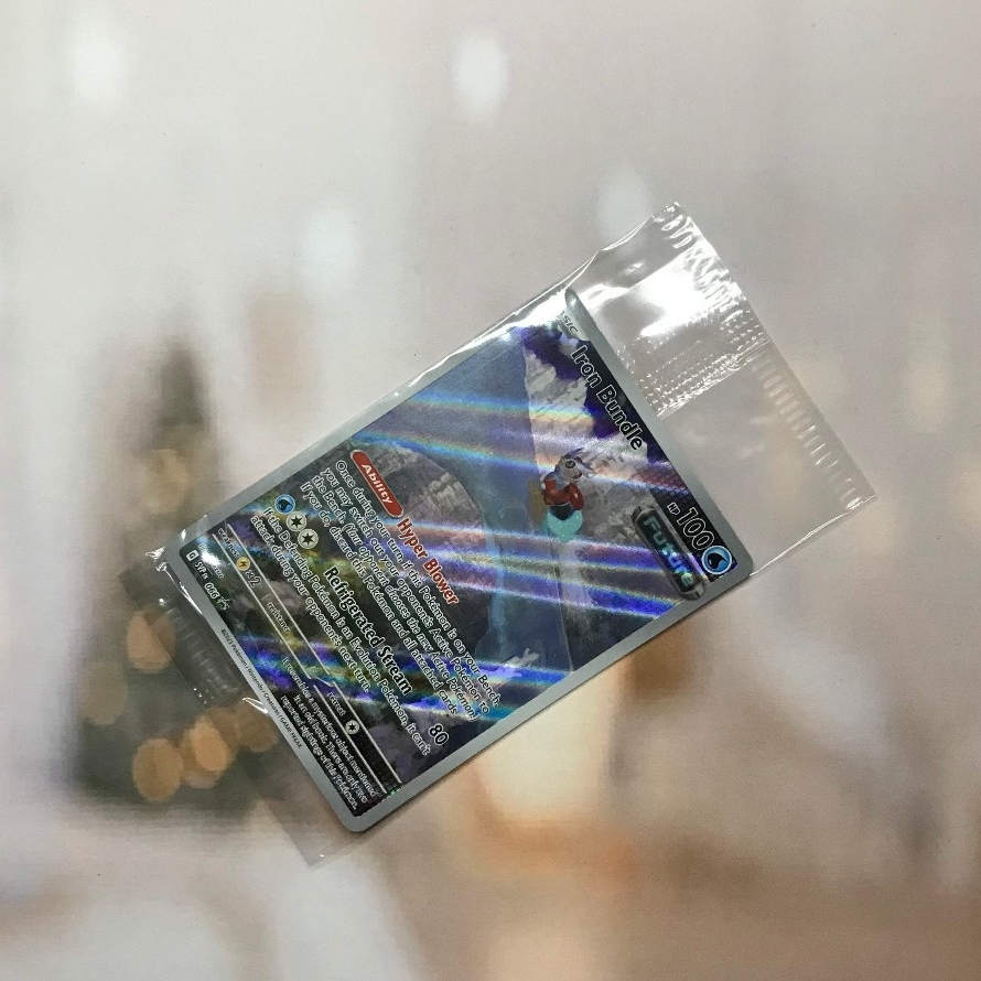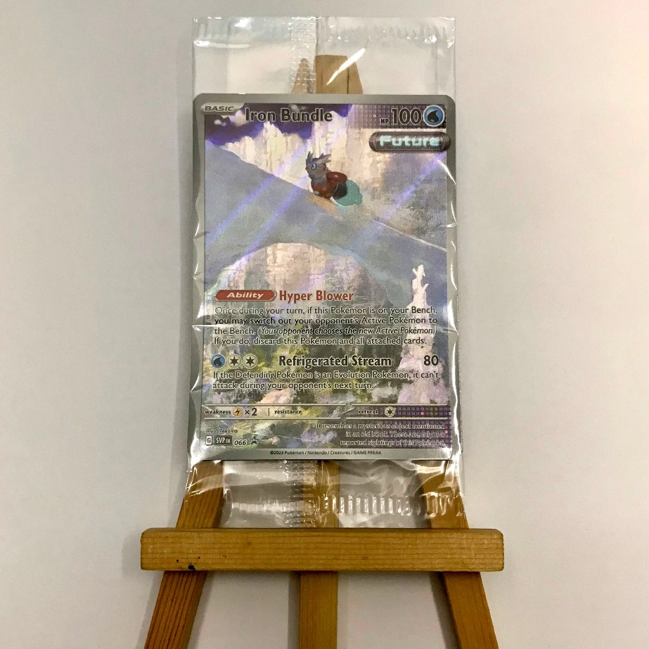 Thẻ hình Pokemon Iron Bundle SVP066 (seal) - Bài lẻ Illustration Rare Promo tiếng Anh chính hãng Nintendo - Nhập khẩu Hoa Kỳ USA ➖➖➖➖➖➖ Sản phẩm chính hãng TCG, được sản xuất bởi The Pokémon Company, nên quý khách có thể yên tâm về chất lượng và độ độc đáo của từng thẻ bài. Chúng tôi cam kết chỉ bán hàng chính hãng và nói không với hàng nhái, hàng giả mạo. Mỗi thẻ bài đều ở trong tình trạng NM-M và sẽ là một phần không thể thiếu cho bộ sưu tập của bạn, giúp bạn có những trải nghiệm thú vị và phong phú. Chất liệu chính của thẻ bài là giấy cao cấp, đảm bảo độ bền và màu sắc sống động, chi tiết. Dòng sản phẩm: TCG Hãng sản xuất: The Pokémon Company Chất liệu: Giấy Kích thước thẻ bài: 6,3×8,8cm ➖➖➖➖➖➖ Thông Báo Hướng Dẫn Bảo Quản và Kiểm Tra Sản Phẩm Thẻ Bài: ✅ Quay Video Khi Mở Kiện: Để đảm bảo quyền lợi, khi nhận sản phẩm, vui lòng quay video quá trình mở kiện. Video này sẽ là bằng chứng đối chiếu quý giá, giúp chúng tôi nhanh chóng giải quyết mọi vấn đề và thắc mắc của bạn. ✅ Mọi sản phẩm như Gói thẻ bài (Pack lẻ), Booster Box, Bộ bài nguyên hộp phải còn nguyên niêm phong và bao bì. Chỉ những sản phẩm còn giữ nguyên vẹn mới được chấp nhận đổi trả hoàn tiền. ✅ Các lá bài chính hãng có thể bị cong khi tiếp xúc với không khí. Đây là hiện tượng bình thường, bạn có thể khắc phục bằng cách sử dụng bọc bài, cất vào album, hoặc ép giữa quyển vở dày. ✅ Một số lá bài có thể xuất hiện các vết trầy xước nhỏ, nhưng không ảnh hưởng đến chất lượng và quá trình sử dụng của bạn. ✅ Chúng tôi không chịu trách nhiệm về nội dung bên trong các gói và hộp thẻ bài do đóng gói và niêm phong từ nhà sản xuất. Mọi thắc mắc và khiếu nại, vui lòng liên hệ trực tiếp với chúng tôi, ➖➖➖➖➖➖