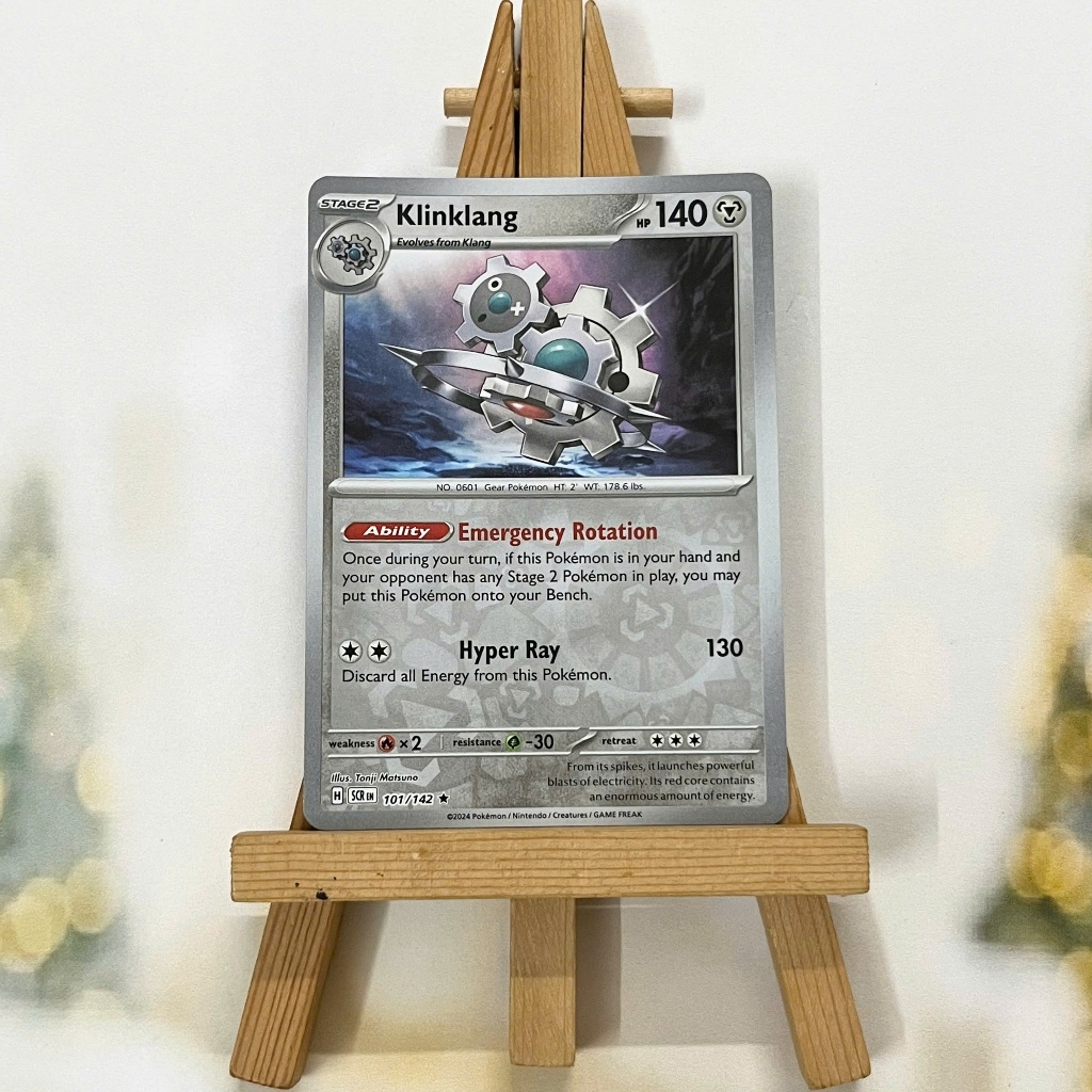Thẻ hình Pokemon Klinklang 101/142 - Lá bài lẻ Stellar Crown Rare Reverse Holo tiếng Anh chính hãng Nintendo - Nhập khẩu Hoa Kỳ USA ➖➖➖➖➖➖ Sản phẩm chính hãng TCG, được sản xuất bởi The Pokémon Company, nên quý khách có thể yên tâm về chất lượng và độ độc đáo của từng thẻ bài. Chúng tôi cam kết chỉ bán hàng chính hãng và nói không với hàng nhái, hàng giả mạo. Mỗi thẻ bài đều ở trong tình trạng NM-M và sẽ là một phần không thể thiếu cho bộ sưu tập của bạn, giúp bạn có những trải nghiệm thú vị và phong phú. Chất liệu chính của thẻ bài là giấy cao cấp, đảm bảo độ bền và màu sắc sống động, chi tiết. Dòng sản phẩm: TCG Hãng sản xuất: The Pokémon Company Chất liệu: Giấy Kích thước thẻ bài: 6,3×8,8cm ➖➖➖➖➖➖ Thông Báo Hướng Dẫn Bảo Quản và Kiểm Tra Sản Phẩm Thẻ Bài: ✅ Quay Video Khi Mở Kiện: Để đảm bảo quyền lợi, khi nhận sản phẩm, vui lòng quay video quá trình mở kiện. Video này sẽ là bằng chứng đối chiếu quý giá, giúp chúng tôi nhanh chóng giải quyết mọi vấn đề và thắc mắc của bạn. ✅ Mọi sản phẩm như Gói thẻ bài (Pack lẻ), Booster Box, Bộ bài nguyên hộp phải còn nguyên niêm phong và bao bì. Chỉ những sản phẩm còn giữ nguyên vẹn mới được chấp nhận đổi trả hoàn tiền. ✅ Các lá bài chính hãng có thể bị cong khi tiếp xúc với không khí. Đây là hiện tượng bình thường, bạn có thể khắc phục bằng cách sử dụng bọc bài, cất vào album, hoặc ép giữa quyển vở dày. ✅ Một số lá bài có thể xuất hiện các vết trầy xước nhỏ, nhưng không ảnh hưởng đến chất lượng và quá trình sử dụng của bạn. ✅ Chúng tôi không chịu trách nhiệm về nội dung bên trong các gói và hộp thẻ bài do đóng gói và niêm phong từ nhà sản xuất. Mọi thắc mắc và khiếu nại, vui lòng liên hệ trực tiếp với chúng tôi.