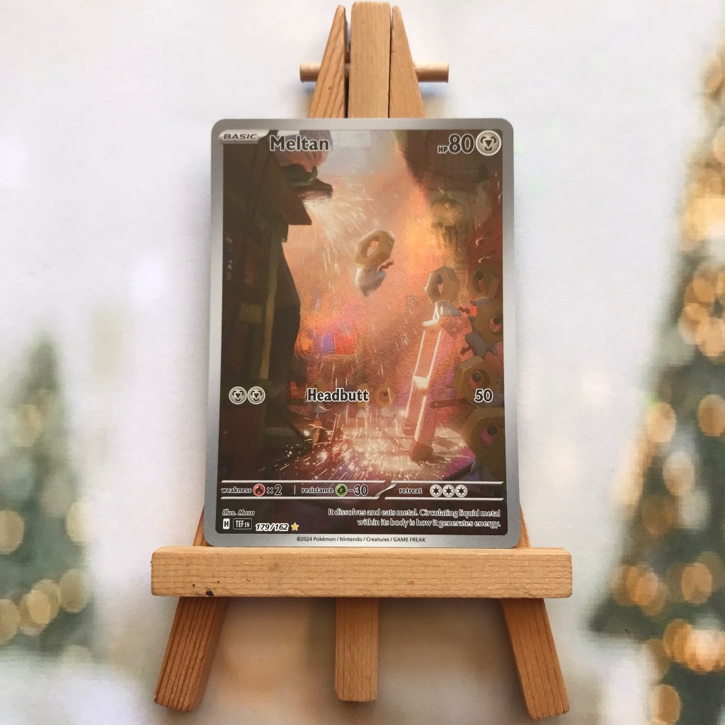 Thẻ hình Pokemon Meltan 179/162 - Lá bài lẻ Scarlet & Violet: Temporal Forces Illustration Rare tiếng Anh chính hãng Nintendo - Nhập khẩu Hoa Kỳ USA ➖➖➖➖➖➖ Sản phẩm chính hãng TCG, được sản xuất bởi The Pokémon Company, nên quý khách có thể yên tâm về chất lượng và độ độc đáo của từng thẻ bài. Chúng tôi cam kết chỉ bán hàng chính hãng và nói không với hàng nhái, hàng giả mạo. Mỗi thẻ bài đều ở trong tình trạng NM-M và sẽ là một phần không thể thiếu cho bộ sưu tập của bạn, giúp bạn có những trải nghiệm thú vị và phong phú. Chất liệu chính của thẻ bài là giấy cao cấp, đảm bảo độ bền và màu sắc sống động, chi tiết. Dòng sản phẩm: TCG Hãng sản xuất: The Pokémon Company Chất liệu: Giấy Kích thước thẻ bài: 6,3×8,8cm ➖➖➖➖➖➖ Thông Báo Hướng Dẫn Bảo Quản và Kiểm Tra Sản Phẩm Thẻ Bài: ✅ Quay Video Khi Mở Kiện: Để đảm bảo quyền lợi, khi nhận sản phẩm, vui lòng quay video quá trình mở kiện. Video này sẽ là bằng chứng đối chiếu quý giá, giúp chúng tôi nhanh chóng giải quyết mọi vấn đề và thắc mắc của bạn. ✅ Mọi sản phẩm như Gói thẻ bài (Pack lẻ), Booster Box, Bộ bài nguyên hộp phải còn nguyên niêm phong và bao bì. Chỉ những sản phẩm còn giữ nguyên vẹn mới được chấp nhận đổi trả hoàn tiền. ✅ Các lá bài chính hãng có thể bị cong khi tiếp xúc với không khí. Đây là hiện tượng bình thường, bạn có thể khắc phục bằng cách sử dụng bọc bài, cất vào album, hoặc ép giữa quyển vở dày. ✅ Một số lá bài có thể xuất hiện các vết trầy xước nhỏ, nhưng không ảnh hưởng đến chất lượng và quá trình sử dụng của bạn. ✅ Chúng tôi không chịu trách nhiệm về nội dung bên trong các gói và hộp thẻ bài do đóng gói và niêm phong từ nhà sản xuất. Mọi thắc mắc và khiếu nại, vui lòng liên hệ trực tiếp với chúng tôi, ➖➖➖➖➖➖