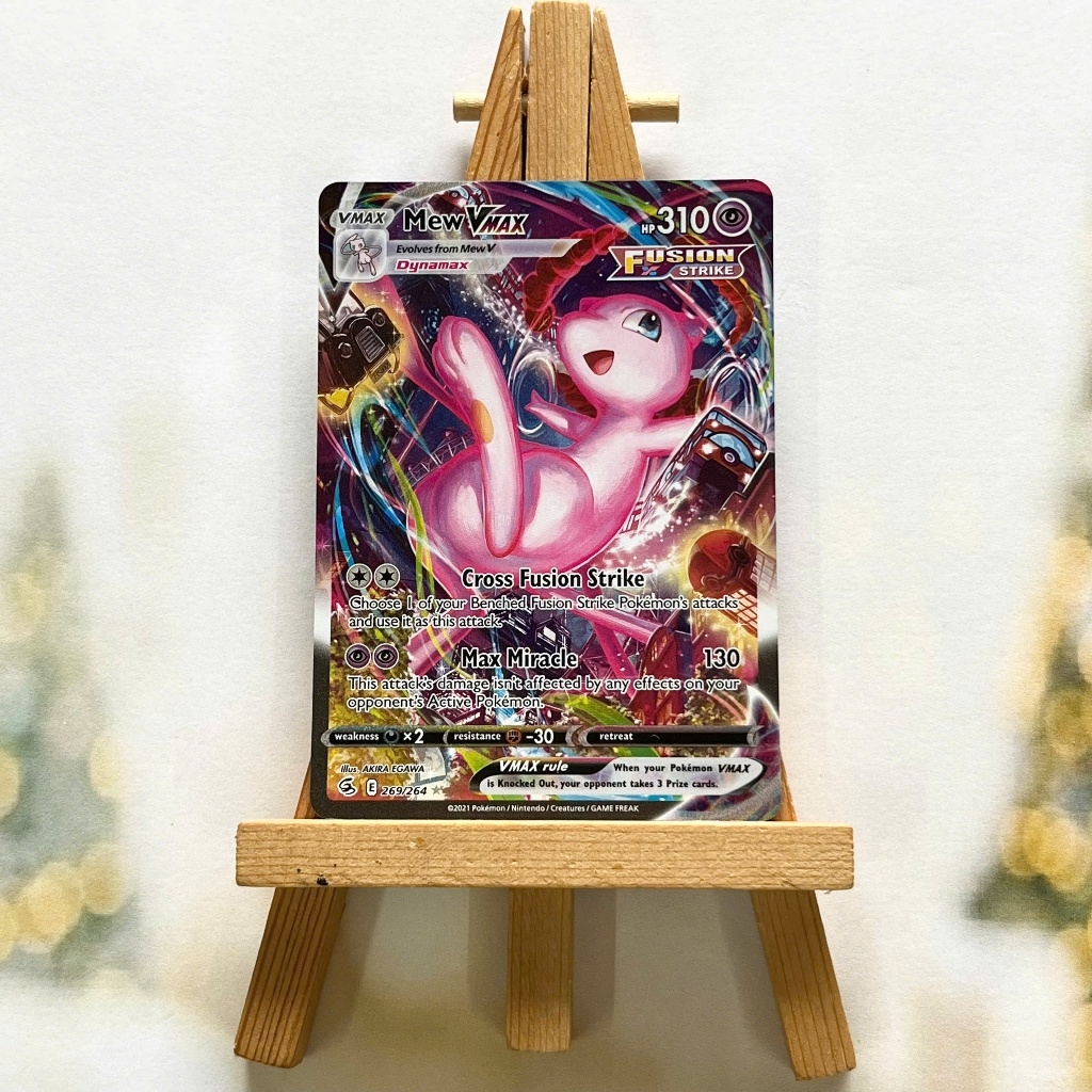 Thẻ hình Pokemon Mew VMAX 269/264 - Lá bài lẻ Fusion Strike Alternate Art Secret Rare tiếng Anh chính hãng Nintendo - Nhập khẩu Hoa Kỳ USA ➖➖➖➖➖➖ Sản phẩm chính hãng TCG, được sản xuất bởi The Pokémon Company, nên quý khách có thể yên tâm về chất lượng và độ độc đáo của từng thẻ bài. Chúng tôi cam kết chỉ bán hàng chính hãng và nói không với hàng nhái, hàng giả mạo. Mỗi thẻ bài đều ở trong tình trạng NM-M và sẽ là một phần không thể thiếu cho bộ sưu tập của bạn, giúp bạn có những trải nghiệm thú vị và phong phú. Chất liệu chính của thẻ bài là giấy cao cấp, đảm bảo độ bền và màu sắc sống động, chi tiết. Dòng sản phẩm: TCG Hãng sản xuất: The Pokémon Company Chất liệu: Giấy Kích thước thẻ bài: 6,3×8,8cm ➖➖➖➖➖➖ Thông Báo Hướng Dẫn Bảo Quản và Kiểm Tra Sản Phẩm Thẻ Bài: ✅ Quay Video Khi Mở Kiện: Để đảm bảo quyền lợi, khi nhận sản phẩm, vui lòng quay video quá trình mở kiện. Video này sẽ là bằng chứng đối chiếu quý giá, giúp chúng tôi nhanh chóng giải quyết mọi vấn đề và thắc mắc của bạn. ✅ Mọi sản phẩm như Gói thẻ bài (Pack lẻ), Booster Box, Bộ bài nguyên hộp phải còn nguyên niêm phong và bao bì. Chỉ những sản phẩm còn giữ nguyên vẹn mới được chấp nhận đổi trả hoàn tiền. ✅ Các lá bài chính hãng có thể bị cong khi tiếp xúc với không khí. Đây là hiện tượng bình thường, bạn có thể khắc phục bằng cách sử dụng bọc bài, cất vào album, hoặc ép giữa quyển vở dày. ✅ Một số lá bài có thể xuất hiện các vết trầy xước nhỏ, nhưng không ảnh hưởng đến chất lượng và quá trình sử dụng của bạn. ✅ Chúng tôi không chịu trách nhiệm về nội dung bên trong các gói và hộp thẻ bài do đóng gói và niêm phong từ nhà sản xuất. Mọi thắc mắc và khiếu nại, vui lòng liên hệ trực tiếp với chúng tôi.