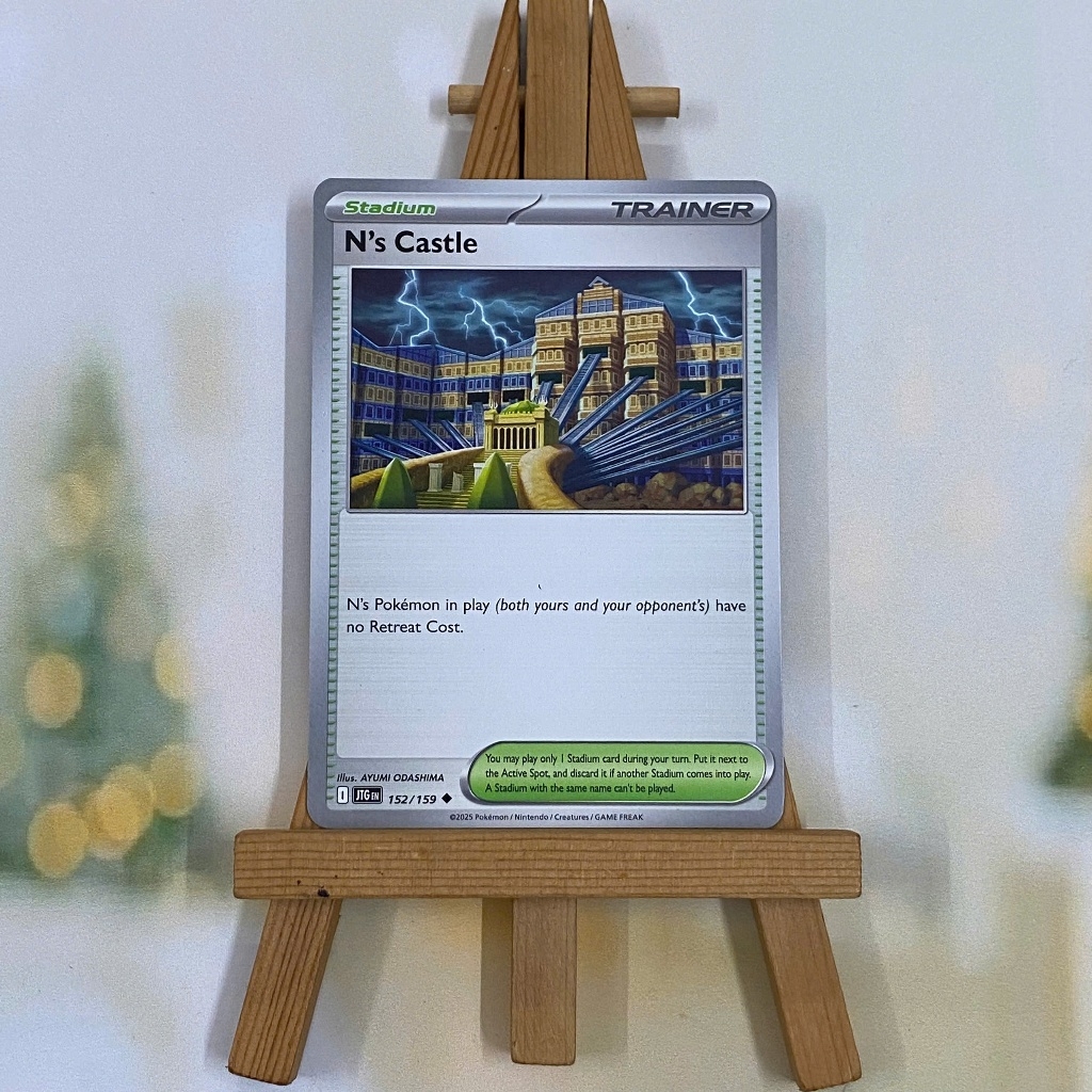 Thẻ hình Pokemon N's Castle 152/159 - Lá bài lẻ Journey Together Uncommon Reverse Holo tiếng Anh Nintendo - Nhập khẩu Hoa Kỳ USA ➖➖➖➖➖➖ Sản phẩm TCG, được sản xuất bởi The Pokémon Company, nên quý khách có thể yên tâm về chất lượng và độ độc đáo của từng thẻ bài. Chúng tôi cam kết nói không với hàng nhái, hàng giả mạo. Mỗi thẻ bài đều ở trong tình trạng NM-M và sẽ là một phần không thể thiếu cho bộ sưu tập của bạn, giúp bạn có những trải nghiệm thú vị và phong phú. Chất liệu chính của thẻ bài là giấy cao cấp, đảm bảo độ bền và màu sắc sống động, chi tiết. Dòng sản phẩm: TCG Hãng sản xuất: The Pokémon Company Chất liệu: Giấy Kích thước thẻ bài: 6,3×8,8cm ➖➖➖➖➖➖ Thông Báo Hướng Dẫn Bảo Quản và Kiểm Tra Sản Phẩm Thẻ Bài: ✅ Quay Video Khi Mở Kiện: Để đảm bảo quyền lợi, khi nhận sản phẩm, vui lòng quay video quá trình mở kiện. Video này sẽ là bằng chứng đối chiếu quý giá, giúp chúng tôi nhanh chóng giải quyết mọi vấn đề và thắc mắc của bạn. ✅ Mọi sản phẩm như Gói thẻ bài (Pack lẻ), Booster Box, Bộ bài nguyên hộp phải còn nguyên niêm phong và bao bì. Chỉ những sản phẩm còn giữ nguyên vẹn mới được chấp nhận đổi trả hoàn tiền. ✅ Các lá bài có thể bị cong khi tiếp xúc với không khí. Đây là hiện tượng bình thường, bạn có thể khắc phục bằng cách sử dụng bọc bài, cất vào album, hoặc ép giữa quyển vở dày. ✅ Một số lá bài có thể xuất hiện các vết trầy xước nhỏ, nhưng không ảnh hưởng đến chất lượng và quá trình sử dụng của bạn. ✅ Chúng tôi không chịu trách nhiệm về nội dung bên trong các gói và hộp thẻ bài do đóng gói và niêm phong từ nhà sản xuất. Mọi thắc mắc và khiếu nại, vui lòng liên hệ trực tiếp với chúng tôi.