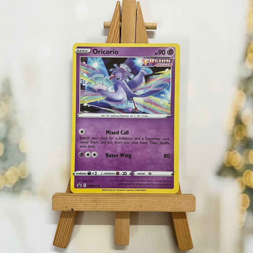 Thẻ hình Pokemon Oricorio SWSH210 - Lá bài lẻ Sword & Shield Holo Promo tiếng Anh chính hãng Nintendo - Nhập khẩu Hoa Kỳ USA ➖➖➖➖➖➖ Sản phẩm chính hãng TCG, được sản xuất bởi The Pokémon Company, nên quý khách có thể yên tâm về chất lượng và độ độc đáo của từng thẻ bài. Chúng tôi cam kết chỉ bán hàng chính hãng và nói không với hàng nhái, hàng giả mạo. Mỗi thẻ bài đều ở trong tình trạng NM-M và sẽ là một phần không thể thiếu cho bộ sưu tập của bạn, giúp bạn có những trải nghiệm thú vị và phong phú. Chất liệu chính của thẻ bài là giấy cao cấp, đảm bảo độ bền và màu sắc sống động, chi tiết. Dòng sản phẩm: TCG Hãng sản xuất: The Pokémon Company Chất liệu: Giấy Kích thước thẻ bài: 6,3×8,8cm ➖➖➖➖➖➖ Thông Báo Hướng Dẫn Bảo Quản và Kiểm Tra Sản Phẩm Thẻ Bài: ✅ Quay Video Khi Mở Kiện: Để đảm bảo quyền lợi, khi nhận sản phẩm, vui lòng quay video quá trình mở kiện. Video này sẽ là bằng chứng đối chiếu quý giá, giúp chúng tôi nhanh chóng giải quyết mọi vấn đề và thắc mắc của bạn. ✅ Mọi sản phẩm như Gói thẻ bài (Pack lẻ), Booster Box, Bộ bài nguyên hộp phải còn nguyên niêm phong và bao bì. Chỉ những sản phẩm còn giữ nguyên vẹn mới được chấp nhận đổi trả hoàn tiền. ✅ Các lá bài chính hãng có thể bị cong khi tiếp xúc với không khí. Đây là hiện tượng bình thường, bạn có thể khắc phục bằng cách sử dụng bọc bài, cất vào album, hoặc ép giữa quyển vở dày. ✅ Một số lá bài có thể xuất hiện các vết trầy xước nhỏ, nhưng không ảnh hưởng đến chất lượng và quá trình sử dụng của bạn. ✅ Chúng tôi không chịu trách nhiệm về nội dung bên trong các gói và hộp thẻ bài do đóng gói và niêm phong từ nhà sản xuất. Mọi thắc mắc và khiếu nại, vui lòng liên hệ trực tiếp với chúng tôi, ➖➖➖➖➖➖