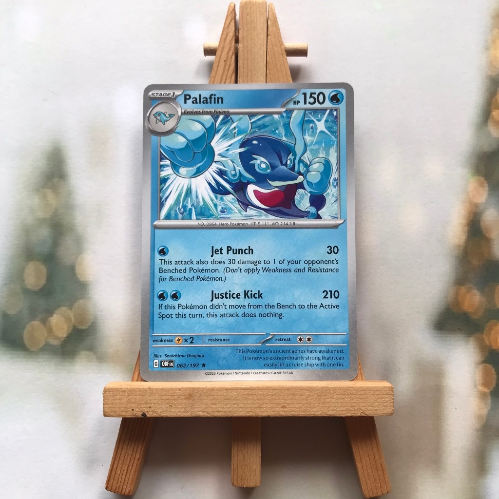 Thẻ hình Pokemon Palafin 062/197 - Lá bài lẻ Obsidian Flames Rare Reverse Holo tiếng Anh Nintendo - Nhập khẩu Hoa Kỳ USA ➖➖➖➖➖➖ Sản phẩm TCG, được sản xuất bởi The Pokémon Company, nên quý khách có thể yên tâm về chất lượng và độ độc đáo của từng thẻ bài. Chúng tôi cam kết nói không với hàng nhái, hàng giả mạo. Mỗi thẻ bài đều ở trong tình trạng NM-M và sẽ là một phần không thể thiếu cho bộ sưu tập của bạn, giúp bạn có những trải nghiệm thú vị và phong phú. Chất liệu chính của thẻ bài là giấy cao cấp, đảm bảo độ bền và màu sắc sống động, chi tiết. Dòng sản phẩm: TCG Hãng sản xuất: The Pokémon Company Chất liệu: Giấy Kích thước thẻ bài: 6,3×8,8cm ➖➖➖➖➖➖ Thông Báo Hướng Dẫn Bảo Quản và Kiểm Tra Sản Phẩm Thẻ Bài: ✅ Quay Video Khi Mở Kiện: Để đảm bảo quyền lợi, khi nhận sản phẩm, vui lòng quay video quá trình mở kiện. Video này sẽ là bằng chứng đối chiếu quý giá, giúp chúng tôi nhanh chóng giải quyết mọi vấn đề và thắc mắc của bạn. ✅ Mọi sản phẩm như Gói thẻ bài (Pack lẻ), Booster Box, Bộ bài nguyên hộp phải còn nguyên niêm phong và bao bì. Chỉ những sản phẩm còn giữ nguyên vẹn mới được chấp nhận đổi trả hoàn tiền. ✅ Các lá bài có thể bị cong khi tiếp xúc với không khí. Đây là hiện tượng bình thường, bạn có thể khắc phục bằng cách sử dụng bọc bài, cất vào album, hoặc ép giữa quyển vở dày. ✅ Một số lá bài có thể xuất hiện các vết trầy xước nhỏ, nhưng không ảnh hưởng đến chất lượng và quá trình sử dụng của bạn. ✅ Chúng tôi không chịu trách nhiệm về nội dung bên trong các gói và hộp thẻ bài do đóng gói và niêm phong từ nhà sản xuất. Mọi thắc mắc và khiếu nại, vui lòng liên hệ trực tiếp với chúng tôi.