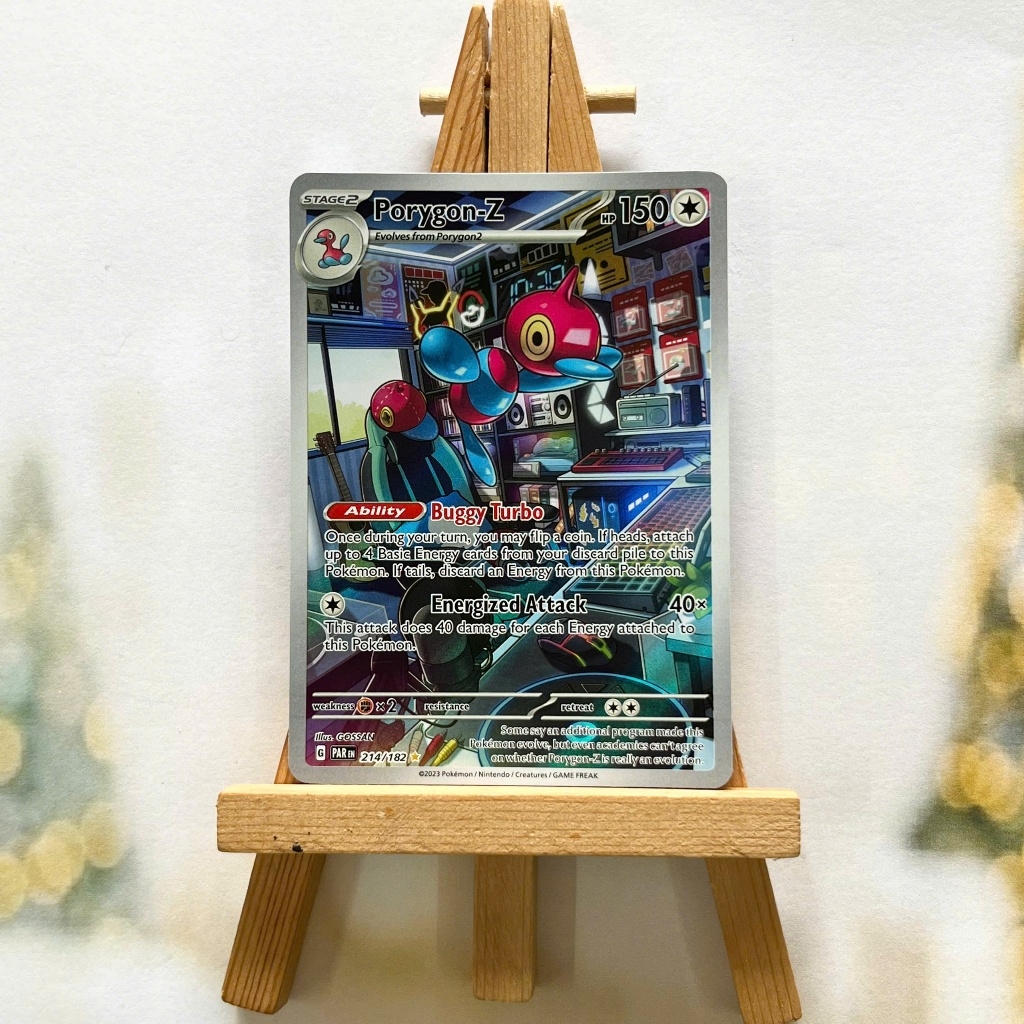 Thẻ hình Pokemon Porygon-Z 214/182 - Lá bài Scarlet & Violet: Paradox Rift Illustration Rare tiếng Anh chính hãng Nintendo - Nhập khẩu Hoa Kỳ USA ➖➖➖➖➖➖ Sản phẩm chính hãng TCG, được sản xuất bởi The Pokémon Company, nên quý khách có thể yên tâm về chất lượng và độ độc đáo của từng thẻ bài. Chúng tôi cam kết chỉ bán hàng chính hãng và nói không với hàng nhái, hàng giả mạo. Mỗi thẻ bài đều ở trong tình trạng NM-M và sẽ là một phần không thể thiếu cho bộ sưu tập của bạn, giúp bạn có những trải nghiệm thú vị và phong phú. Chất liệu chính của thẻ bài là giấy cao cấp, đảm bảo độ bền và màu sắc sống động, chi tiết. Dòng sản phẩm: TCG Hãng sản xuất: The Pokémon Company Chất liệu: Giấy Kích thước thẻ bài: 6,3×8,8cm ➖➖➖➖➖➖ Thông Báo Hướng Dẫn Bảo Quản và Kiểm Tra Sản Phẩm Thẻ Bài: ✅ Quay Video Khi Mở Kiện: Để đảm bảo quyền lợi, khi nhận sản phẩm, vui lòng quay video quá trình mở kiện. Video này sẽ là bằng chứng đối chiếu quý giá, giúp chúng tôi nhanh chóng giải quyết mọi vấn đề và thắc mắc của bạn. ✅ Mọi sản phẩm như Gói thẻ bài (Pack lẻ), Booster Box, Bộ bài nguyên hộp phải còn nguyên niêm phong và bao bì. Chỉ những sản phẩm còn giữ nguyên vẹn mới được chấp nhận đổi trả hoàn tiền. ✅ Các lá bài chính hãng có thể bị cong khi tiếp xúc với không khí. Đây là hiện tượng bình thường, bạn có thể khắc phục bằng cách sử dụng bọc bài, cất vào album, hoặc ép giữa quyển vở dày. ✅ Một số lá bài có thể xuất hiện các vết trầy xước nhỏ, nhưng không ảnh hưởng đến chất lượng và quá trình sử dụng của bạn. ✅ Chúng tôi không chịu trách nhiệm về nội dung bên trong các gói và hộp thẻ bài do đóng gói và niêm phong từ nhà sản xuất. Mọi thắc mắc và khiếu nại, vui lòng liên hệ trực tiếp với chúng tôi.