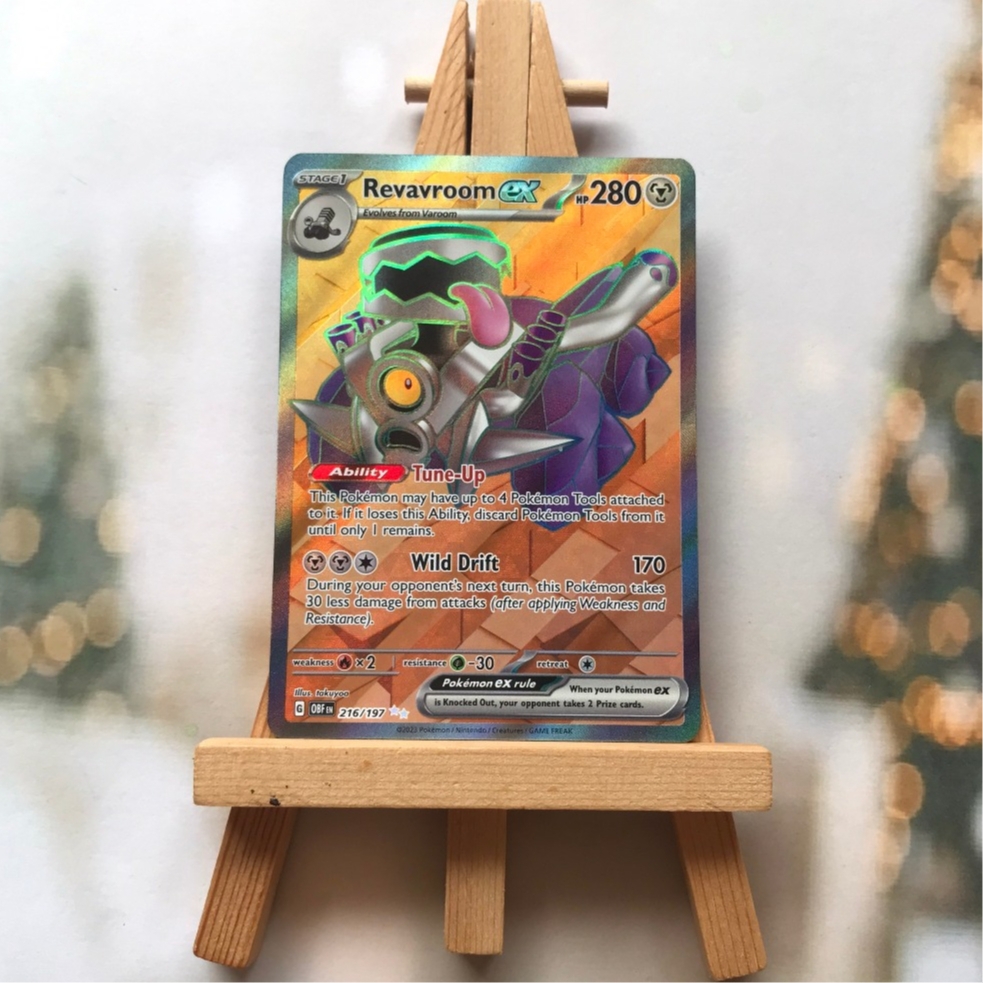 Thẻ hình Pokemon Revavroom ex 216/197 - Bài lẻ Full Art Secret Rare tiếng Anh chính hãng Nintendo - Nhập khẩu Hoa Kỳ USA ➖➖➖➖➖➖ Sản phẩm chính hãng TCG, được sản xuất bởi The Pokémon Company, nên quý khách có thể yên tâm về chất lượng và độ độc đáo của từng thẻ bài. Chúng tôi cam kết chỉ bán hàng chính hãng và nói không với hàng nhái, hàng giả mạo. Mỗi thẻ bài đều ở trong tình trạng NM-M và sẽ là một phần không thể thiếu cho bộ sưu tập của bạn, giúp bạn có những trải nghiệm thú vị và phong phú. Chất liệu chính của thẻ bài là giấy cao cấp, đảm bảo độ bền và màu sắc sống động, chi tiết. Dòng sản phẩm: TCG Hãng sản xuất: The Pokémon Company Chất liệu: Giấy Kích thước thẻ bài: 6,3×8,8cm ➖➖➖➖➖➖ Thông Báo Hướng Dẫn Bảo Quản và Kiểm Tra Sản Phẩm Thẻ Bài: ✅ Quay Video Khi Mở Kiện: Để đảm bảo quyền lợi, khi nhận sản phẩm, vui lòng quay video quá trình mở kiện. Video này sẽ là bằng chứng đối chiếu quý giá, giúp chúng tôi nhanh chóng giải quyết mọi vấn đề và thắc mắc của bạn. ✅ Mọi sản phẩm như Gói thẻ bài (Pack lẻ), Booster Box, Bộ bài nguyên hộp phải còn nguyên niêm phong và bao bì. Chỉ những sản phẩm còn giữ nguyên vẹn mới được chấp nhận đổi trả hoàn tiền. ✅ Các lá bài chính hãng có thể bị cong khi tiếp xúc với không khí. Đây là hiện tượng bình thường, bạn có thể khắc phục bằng cách sử dụng bọc bài, cất vào album, hoặc ép giữa quyển vở dày. ✅ Một số lá bài có thể xuất hiện các vết trầy xước nhỏ, nhưng không ảnh hưởng đến chất lượng và quá trình sử dụng của bạn. ✅ Chúng tôi không chịu trách nhiệm về nội dung bên trong các gói và hộp thẻ bài do đóng gói và niêm phong từ nhà sản xuất. Mọi thắc mắc và khiếu nại, vui lòng liên hệ trực tiếp với chúng tôi, ➖➖➖➖➖➖