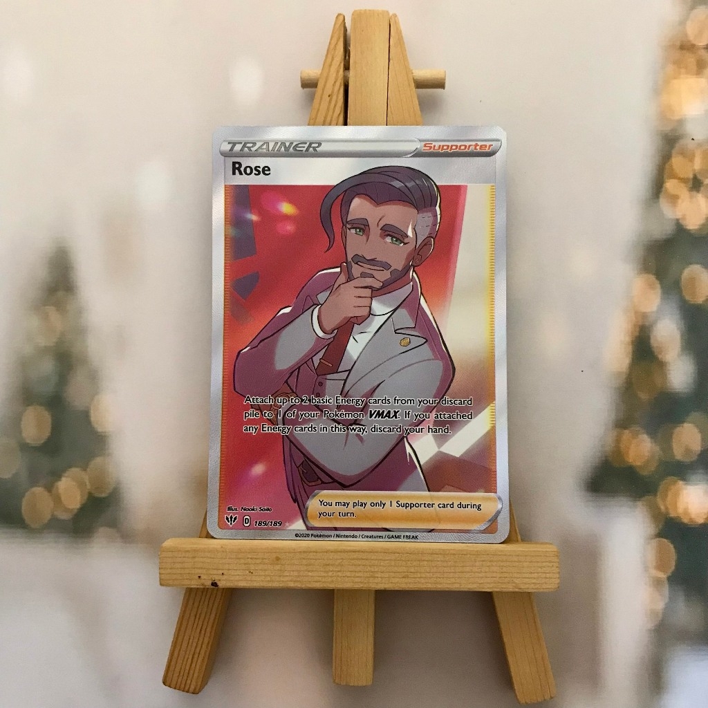 Thẻ hình Pokemon Rose 189/189 - Bài lẻ Full Art Ultra Rare tiếng Anh chính hãng Nintendo - Nhập khẩu Hoa Kỳ USA ➖➖➖➖➖➖ Sản phẩm chính hãng TCG, được sản xuất bởi The Pokémon Company, nên quý khách có thể yên tâm về chất lượng và độ độc đáo của từng thẻ bài. Chúng tôi cam kết chỉ bán hàng chính hãng và nói không với hàng nhái, hàng giả mạo. Mỗi thẻ bài đều ở trong tình trạng NM-M và sẽ là một phần không thể thiếu cho bộ sưu tập của bạn, giúp bạn có những trải nghiệm thú vị và phong phú. Chất liệu chính của thẻ bài là giấy cao cấp, đảm bảo độ bền và màu sắc sống động, chi tiết. Dòng sản phẩm: TCG Hãng sản xuất: The Pokémon Company Chất liệu: Giấy Kích thước thẻ bài: 6,3×8,8cm ➖➖➖➖➖➖ Thông Báo Hướng Dẫn Bảo Quản và Kiểm Tra Sản Phẩm Thẻ Bài: ✅ Quay Video Khi Mở Kiện: Để đảm bảo quyền lợi, khi nhận sản phẩm, vui lòng quay video quá trình mở kiện. Video này sẽ là bằng chứng đối chiếu quý giá, giúp chúng tôi nhanh chóng giải quyết mọi vấn đề và thắc mắc của bạn. ✅ Mọi sản phẩm như Gói thẻ bài (Pack lẻ), Booster Box, Bộ bài nguyên hộp phải còn nguyên niêm phong và bao bì. Chỉ những sản phẩm còn giữ nguyên vẹn mới được chấp nhận đổi trả hoàn tiền. ✅ Các lá bài chính hãng có thể bị cong khi tiếp xúc với không khí. Đây là hiện tượng bình thường, bạn có thể khắc phục bằng cách sử dụng bọc bài, cất vào album, hoặc ép giữa quyển vở dày. ✅ Một số lá bài có thể xuất hiện các vết trầy xước nhỏ, nhưng không ảnh hưởng đến chất lượng và quá trình sử dụng của bạn. ✅ Chúng tôi không chịu trách nhiệm về nội dung bên trong các gói và hộp thẻ bài do đóng gói và niêm phong từ nhà sản xuất. Mọi thắc mắc và khiếu nại, vui lòng liên hệ trực tiếp với chúng tôi, ➖➖➖➖➖➖