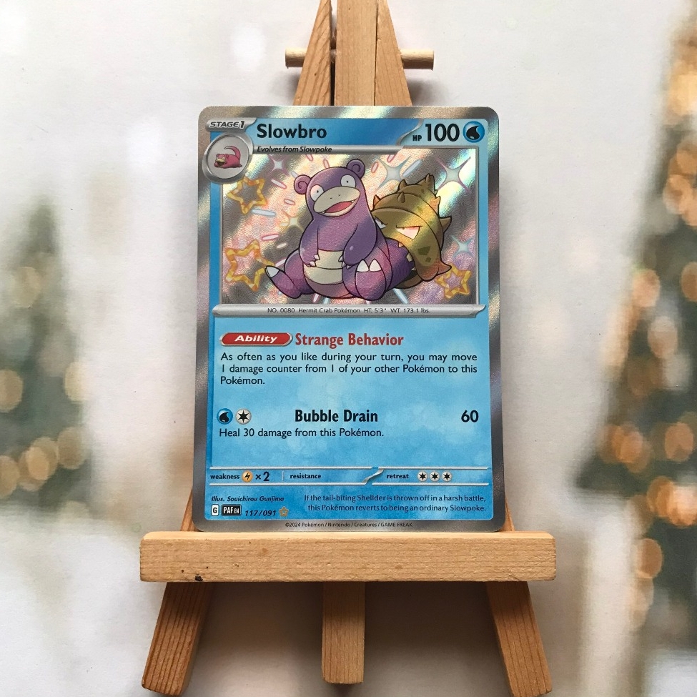 Thẻ hình Pokemon Slowbro 117/091 - Bài lẻ Shiny Rare tiếng Anh chính hãng Nintendo - Nhập khẩu Hoa Kỳ USA ➖➖➖➖➖➖ Sản phẩm chính hãng TCG, được sản xuất bởi The Pokémon Company, nên quý khách có thể yên tâm về chất lượng và độ độc đáo của từng thẻ bài. Chúng tôi cam kết chỉ bán hàng chính hãng và nói không với hàng nhái, hàng giả mạo. Mỗi thẻ bài đều ở trong tình trạng NM-M và sẽ là một phần không thể thiếu cho bộ sưu tập của bạn, giúp bạn có những trải nghiệm thú vị và phong phú. Chất liệu chính của thẻ bài là giấy cao cấp, đảm bảo độ bền và màu sắc sống động, chi tiết. Dòng sản phẩm: TCG Hãng sản xuất: The Pokémon Company Chất liệu: Giấy Kích thước thẻ bài: 6,3×8,8cm ➖➖➖➖➖➖ Thông Báo Hướng Dẫn Bảo Quản và Kiểm Tra Sản Phẩm Thẻ Bài: ✅ Quay Video Khi Mở Kiện: Để đảm bảo quyền lợi, khi nhận sản phẩm, vui lòng quay video quá trình mở kiện. Video này sẽ là bằng chứng đối chiếu quý giá, giúp chúng tôi nhanh chóng giải quyết mọi vấn đề và thắc mắc của bạn. ✅ Mọi sản phẩm như Gói thẻ bài (Pack lẻ), Booster Box, Bộ bài nguyên hộp phải còn nguyên niêm phong và bao bì. Chỉ những sản phẩm còn giữ nguyên vẹn mới được chấp nhận đổi trả hoàn tiền. ✅ Các lá bài chính hãng có thể bị cong khi tiếp xúc với không khí. Đây là hiện tượng bình thường, bạn có thể khắc phục bằng cách sử dụng bọc bài, cất vào album, hoặc ép giữa quyển vở dày. ✅ Một số lá bài có thể xuất hiện các vết trầy xước nhỏ, nhưng không ảnh hưởng đến chất lượng và quá trình sử dụng của bạn. ✅ Chúng tôi không chịu trách nhiệm về nội dung bên trong các gói và hộp thẻ bài do đóng gói và niêm phong từ nhà sản xuất. Mọi thắc mắc và khiếu nại, vui lòng liên hệ trực tiếp với chúng tôi, ➖➖➖➖➖➖