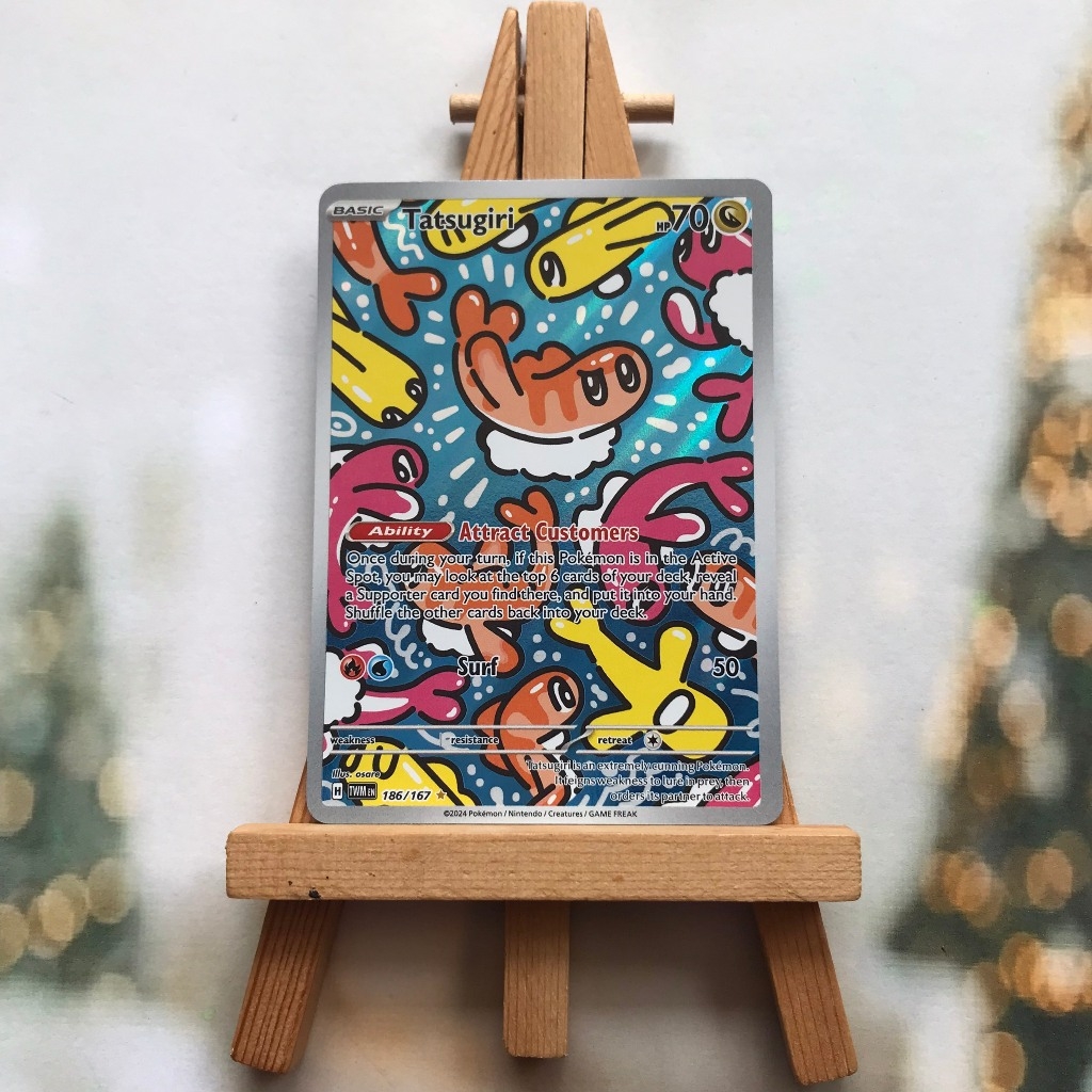 Thẻ hình Pokemon Tatsugiri 186/167 - Lá bài lẻ Scarlet & Violet: Twilight Masquerade Illustration Rare tiếng Anh chính hãng Nintendo - Nhập khẩu Hoa Kỳ USA ➖➖➖➖➖➖ Sản phẩm chính hãng TCG, được sản xuất bởi The Pokémon Company, nên quý khách có thể yên tâm về chất lượng và độ độc đáo của từng thẻ bài. Chúng tôi cam kết chỉ bán hàng chính hãng và nói không với hàng nhái, hàng giả mạo. Mỗi thẻ bài đều ở trong tình trạng NM-M và sẽ là một phần không thể thiếu cho bộ sưu tập của bạn, giúp bạn có những trải nghiệm thú vị và phong phú. Chất liệu chính của thẻ bài là giấy cao cấp, đảm bảo độ bền và màu sắc sống động, chi tiết. Dòng sản phẩm: TCG Hãng sản xuất: The Pokémon Company Chất liệu: Giấy Kích thước thẻ bài: 6,3×8,8cm ➖➖➖➖➖➖ Thông Báo Hướng Dẫn Bảo Quản và Kiểm Tra Sản Phẩm Thẻ Bài: ✅ Quay Video Khi Mở Kiện: Để đảm bảo quyền lợi, khi nhận sản phẩm, vui lòng quay video quá trình mở kiện. Video này sẽ là bằng chứng đối chiếu quý giá, giúp chúng tôi nhanh chóng giải quyết mọi vấn đề và thắc mắc của bạn. ✅ Mọi sản phẩm như Gói thẻ bài (Pack lẻ), Booster Box, Bộ bài nguyên hộp phải còn nguyên niêm phong và bao bì. Chỉ những sản phẩm còn giữ nguyên vẹn mới được chấp nhận đổi trả hoàn tiền. ✅ Các lá bài chính hãng có thể bị cong khi tiếp xúc với không khí. Đây là hiện tượng bình thường, bạn có thể khắc phục bằng cách sử dụng bọc bài, cất vào album, hoặc ép giữa quyển vở dày. ✅ Một số lá bài có thể xuất hiện các vết trầy xước nhỏ, nhưng không ảnh hưởng đến chất lượng và quá trình sử dụng của bạn. ✅ Chúng tôi không chịu trách nhiệm về nội dung bên trong các gói và hộp thẻ bài do đóng gói và niêm phong từ nhà sản xuất. Mọi thắc mắc và khiếu nại, vui lòng liên hệ trực tiếp với chúng tôi, ➖➖➖➖➖➖