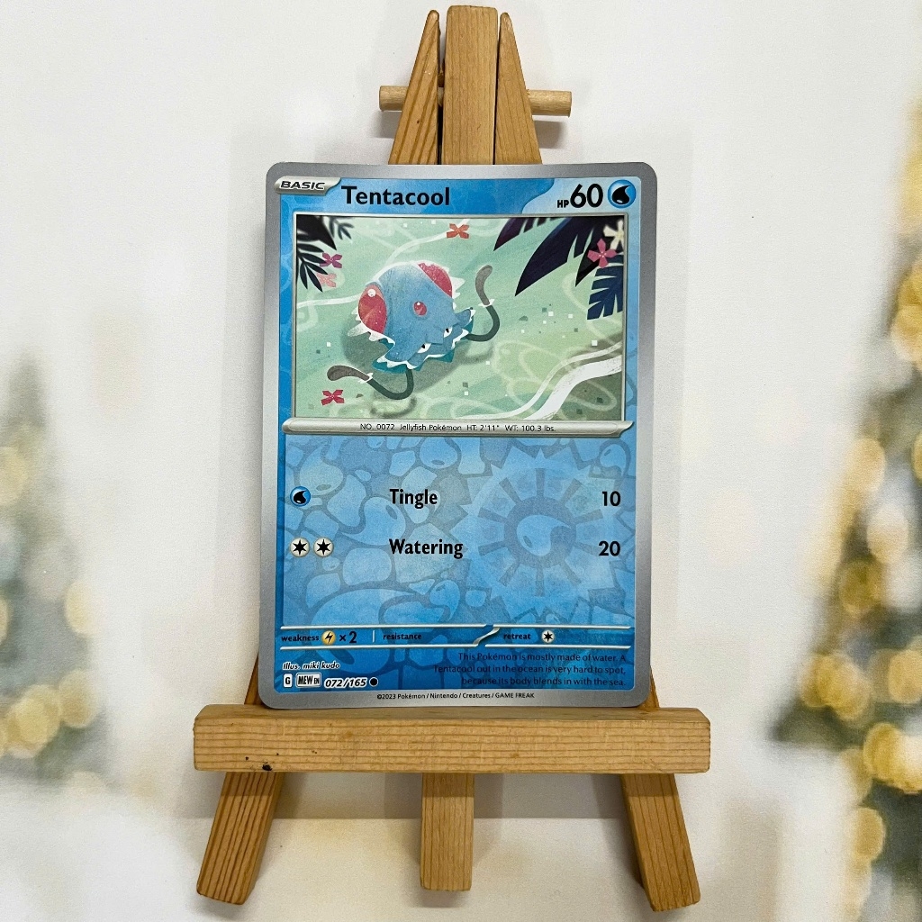 Thẻ hình Pokemon Tentacool 072/165 - Lá bài lẻ Scarlet & Violet 151 Common Reverse Holo tiếng Anh chính hãng Nintendo - Nhập khẩu Hoa Kỳ USA ➖➖➖➖➖➖ Sản phẩm chính hãng TCG, được sản xuất bởi The Pokémon Company, nên quý khách có thể yên tâm về chất lượng và độ độc đáo của từng thẻ bài. Chúng tôi cam kết chỉ bán hàng chính hãng và nói không với hàng nhái, hàng giả mạo. Mỗi thẻ bài đều ở trong tình trạng NM-M và sẽ là một phần không thể thiếu cho bộ sưu tập của bạn, giúp bạn có những trải nghiệm thú vị và phong phú. Chất liệu chính của thẻ bài là giấy cao cấp, đảm bảo độ bền và màu sắc sống động, chi tiết. Dòng sản phẩm: TCG Hãng sản xuất: The Pokémon Company Chất liệu: Giấy Kích thước thẻ bài: 6,3×8,8cm ➖➖➖➖➖➖ Thông Báo Hướng Dẫn Bảo Quản và Kiểm Tra Sản Phẩm Thẻ Bài: ✅ Quay Video Khi Mở Kiện: Để đảm bảo quyền lợi, khi nhận sản phẩm, vui lòng quay video quá trình mở kiện. Video này sẽ là bằng chứng đối chiếu quý giá, giúp chúng tôi nhanh chóng giải quyết mọi vấn đề và thắc mắc của bạn. ✅ Mọi sản phẩm như Gói thẻ bài (Pack lẻ), Booster Box, Bộ bài nguyên hộp phải còn nguyên niêm phong và bao bì. Chỉ những sản phẩm còn giữ nguyên vẹn mới được chấp nhận đổi trả hoàn tiền. ✅ Các lá bài chính hãng có thể bị cong khi tiếp xúc với không khí. Đây là hiện tượng bình thường, bạn có thể khắc phục bằng cách sử dụng bọc bài, cất vào album, hoặc ép giữa quyển vở dày. ✅ Một số lá bài có thể xuất hiện các vết trầy xước nhỏ, nhưng không ảnh hưởng đến chất lượng và quá trình sử dụng của bạn. ✅ Chúng tôi không chịu trách nhiệm về nội dung bên trong các gói và hộp thẻ bài do đóng gói và niêm phong từ nhà sản xuất. Mọi thắc mắc và khiếu nại, vui lòng liên hệ trực tiếp với chúng tôi, ➖➖➖➖➖➖