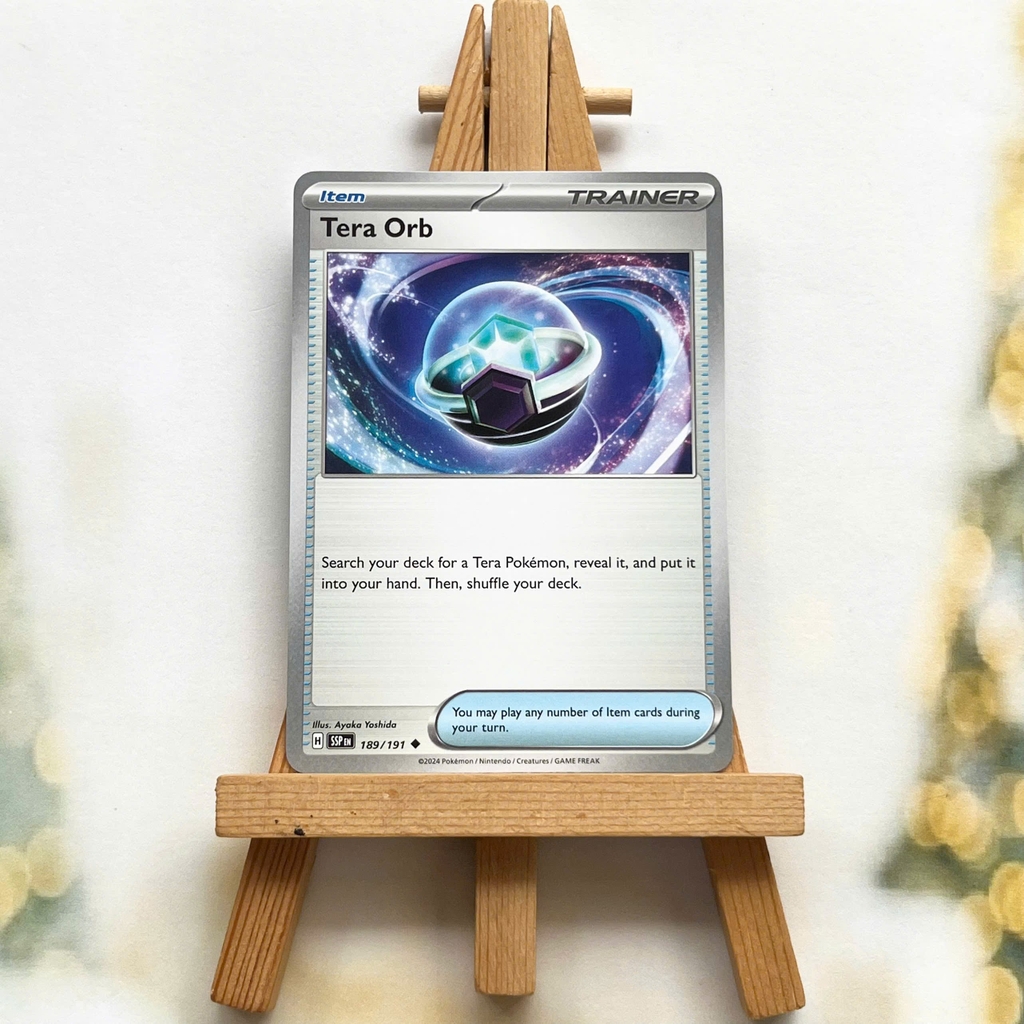Thẻ hình Pokemon Tera Orb 189/191 - Lá bài lẻ Surging Sparks Uncommon Reverse Holo tiếng Anh chính hãng Nintendo - Nhập khẩu Hoa Kỳ USA ➖➖➖➖➖➖ Sản phẩm chính hãng TCG, được sản xuất bởi The Pokémon Company, nên quý khách có thể yên tâm về chất lượng và độ độc đáo của từng thẻ bài. Chúng tôi cam kết chỉ bán hàng chính hãng và nói không với hàng nhái, hàng giả mạo. Mỗi thẻ bài đều ở trong tình trạng NM-M và sẽ là một phần không thể thiếu cho bộ sưu tập của bạn, giúp bạn có những trải nghiệm thú vị và phong phú. Chất liệu chính của thẻ bài là giấy cao cấp, đảm bảo độ bền và màu sắc sống động, chi tiết. Dòng sản phẩm: TCG Hãng sản xuất: The Pokémon Company Chất liệu: Giấy Kích thước thẻ bài: 6,3×8,8cm ➖➖➖➖➖➖ Thông Báo Hướng Dẫn Bảo Quản và Kiểm Tra Sản Phẩm Thẻ Bài: ✅ Quay Video Khi Mở Kiện: Để đảm bảo quyền lợi, khi nhận sản phẩm, vui lòng quay video quá trình mở kiện. Video này sẽ là bằng chứng đối chiếu quý giá, giúp chúng tôi nhanh chóng giải quyết mọi vấn đề và thắc mắc của bạn. ✅ Mọi sản phẩm như Gói thẻ bài (Pack lẻ), Booster Box, Bộ bài nguyên hộp phải còn nguyên niêm phong và bao bì. Chỉ những sản phẩm còn giữ nguyên vẹn mới được chấp nhận đổi trả hoàn tiền. ✅ Các lá bài chính hãng có thể bị cong khi tiếp xúc với không khí. Đây là hiện tượng bình thường, bạn có thể khắc phục bằng cách sử dụng bọc bài, cất vào album, hoặc ép giữa quyển vở dày. ✅ Một số lá bài có thể xuất hiện các vết trầy xước nhỏ, nhưng không ảnh hưởng đến chất lượng và quá trình sử dụng của bạn. ✅ Chúng tôi không chịu trách nhiệm về nội dung bên trong các gói và hộp thẻ bài do đóng gói và niêm phong từ nhà sản xuất. Mọi thắc mắc và khiếu nại, vui lòng liên hệ trực tiếp với chúng tôi.