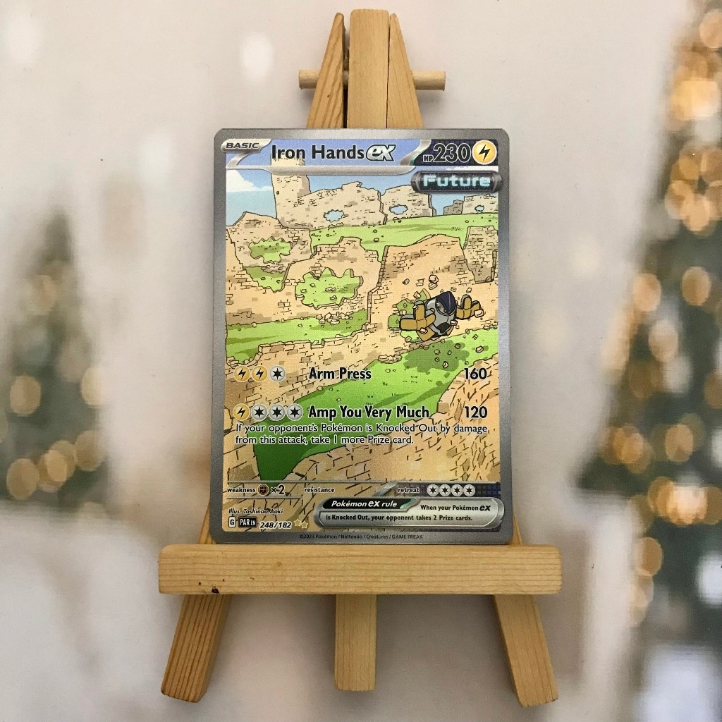 Thẻ hình Pokemon Iron Hands ex 248/182 - Lá bài lẻ Scarlet & Violet: Paradox Rift Special Illustration Rare tiếng Anh chính hãng Nintendo - Nhập khẩu Hoa Kỳ USA ➖➖➖➖➖➖ Sản phẩm chính hãng TCG, được sản xuất bởi The Pokémon Company, nên quý khách có thể yên tâm về chất lượng và độ độc đáo của từng thẻ bài. Chúng tôi cam kết chỉ bán hàng chính hãng và nói không với hàng nhái, hàng giả mạo. Mỗi thẻ bài đều ở trong tình trạng NM-M và sẽ là một phần không thể thiếu cho bộ sưu tập của bạn, giúp bạn có những trải nghiệm thú vị và phong phú. Chất liệu chính của thẻ bài là giấy cao cấp, đảm bảo độ bền và màu sắc sống động, chi tiết. Dòng sản phẩm: TCG Hãng sản xuất: The Pokémon Company Chất liệu: Giấy Kích thước thẻ bài: 6,3×8,8cm ➖➖➖➖➖➖ Thông Báo Hướng Dẫn Bảo Quản và Kiểm Tra Sản Phẩm Thẻ Bài: ✅ Quay Video Khi Mở Kiện: Để đảm bảo quyền lợi, khi nhận sản phẩm, vui lòng quay video quá trình mở kiện. Video này sẽ là bằng chứng đối chiếu quý giá, giúp chúng tôi nhanh chóng giải quyết mọi vấn đề và thắc mắc của bạn. ✅ Mọi sản phẩm như Gói thẻ bài (Pack lẻ), Booster Box, Bộ bài nguyên hộp phải còn nguyên niêm phong và bao bì. Chỉ những sản phẩm còn giữ nguyên vẹn mới được chấp nhận đổi trả hoàn tiền. ✅ Các lá bài chính hãng có thể bị cong khi tiếp xúc với không khí. Đây là hiện tượng bình thường, bạn có thể khắc phục bằng cách sử dụng bọc bài, cất vào album, hoặc ép giữa quyển vở dày. ✅ Một số lá bài có thể xuất hiện các vết trầy xước nhỏ, nhưng không ảnh hưởng đến chất lượng và quá trình sử dụng của bạn. ✅ Chúng tôi không chịu trách nhiệm về nội dung bên trong các gói và hộp thẻ bài do đóng gói và niêm phong từ nhà sản xuất. Mọi thắc mắc và khiếu nại, vui lòng liên hệ trực tiếp với chúng tôi, ➖➖➖➖➖➖
